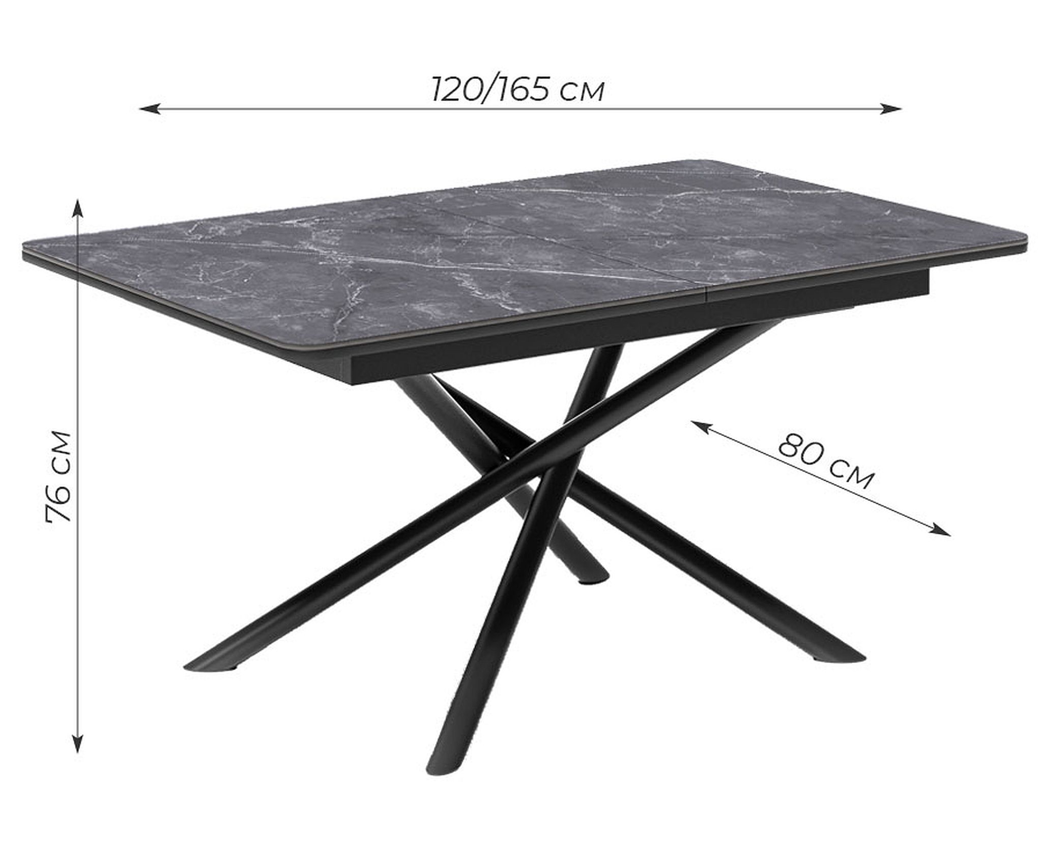 Размер стола в разложенном виде В-760 мм, Ш-1650 мм, Г-800 мм