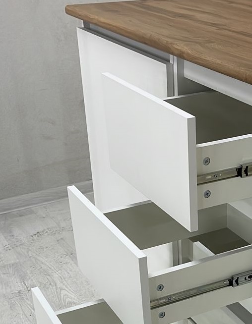 Универсальная сборка, петли с доводчиками на всех дверцах, ящики оснащены шариковыми направляющими полного выдвижения.