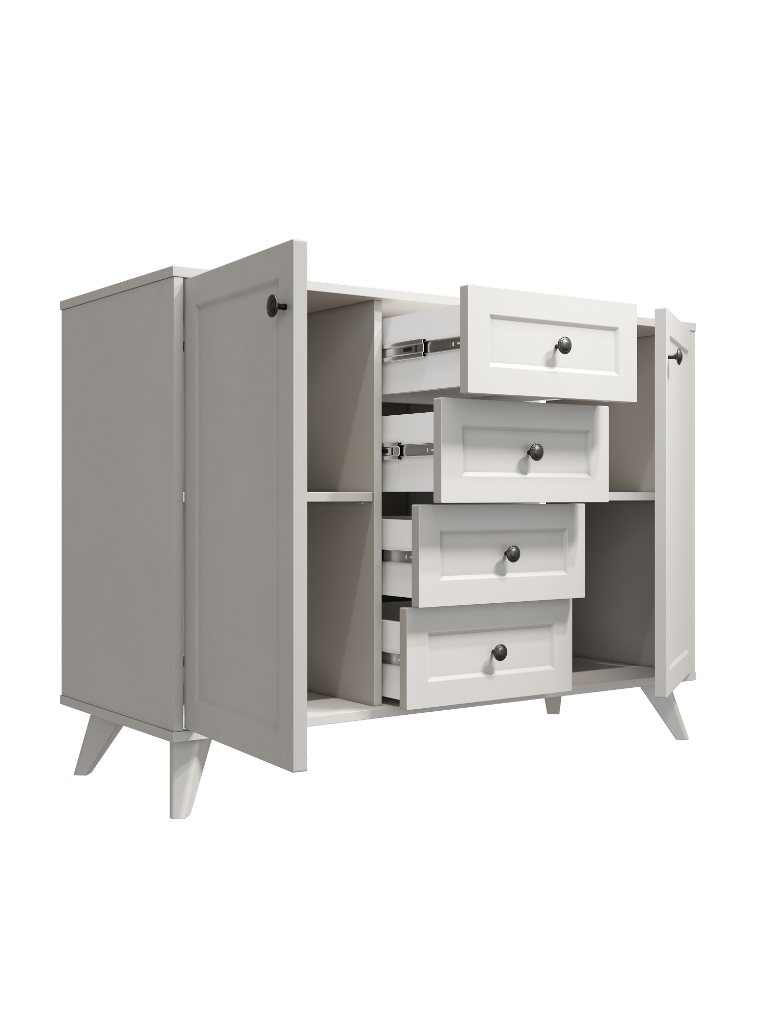 4 выдвижных ящика на телескопических направляющих полного выдвижения