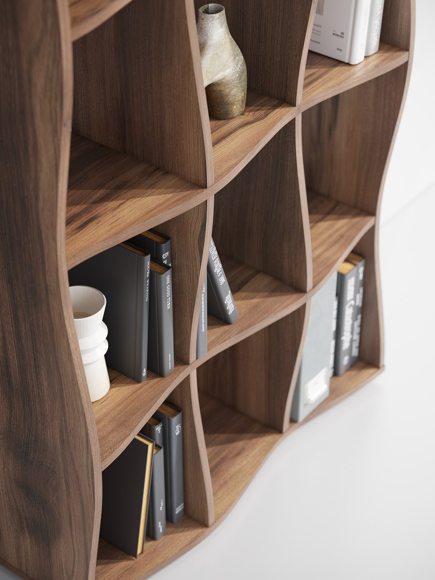 Функциональность: открытые полки для хранения книг, аксессуаров и декора.