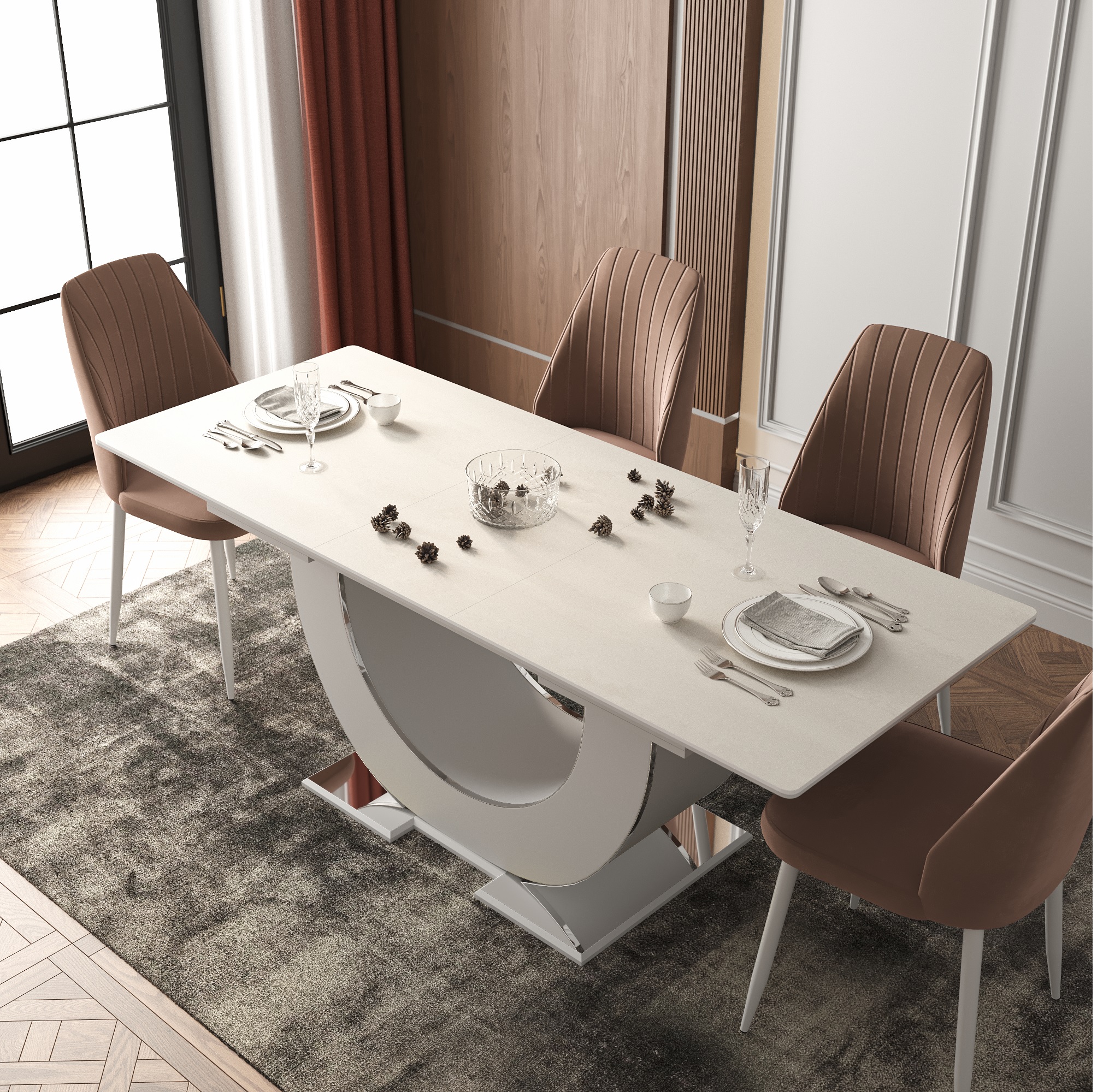 Стол Монако, столешница керамогранит (1600/2000х900х820) серебро (Белый) Код I0000449899
