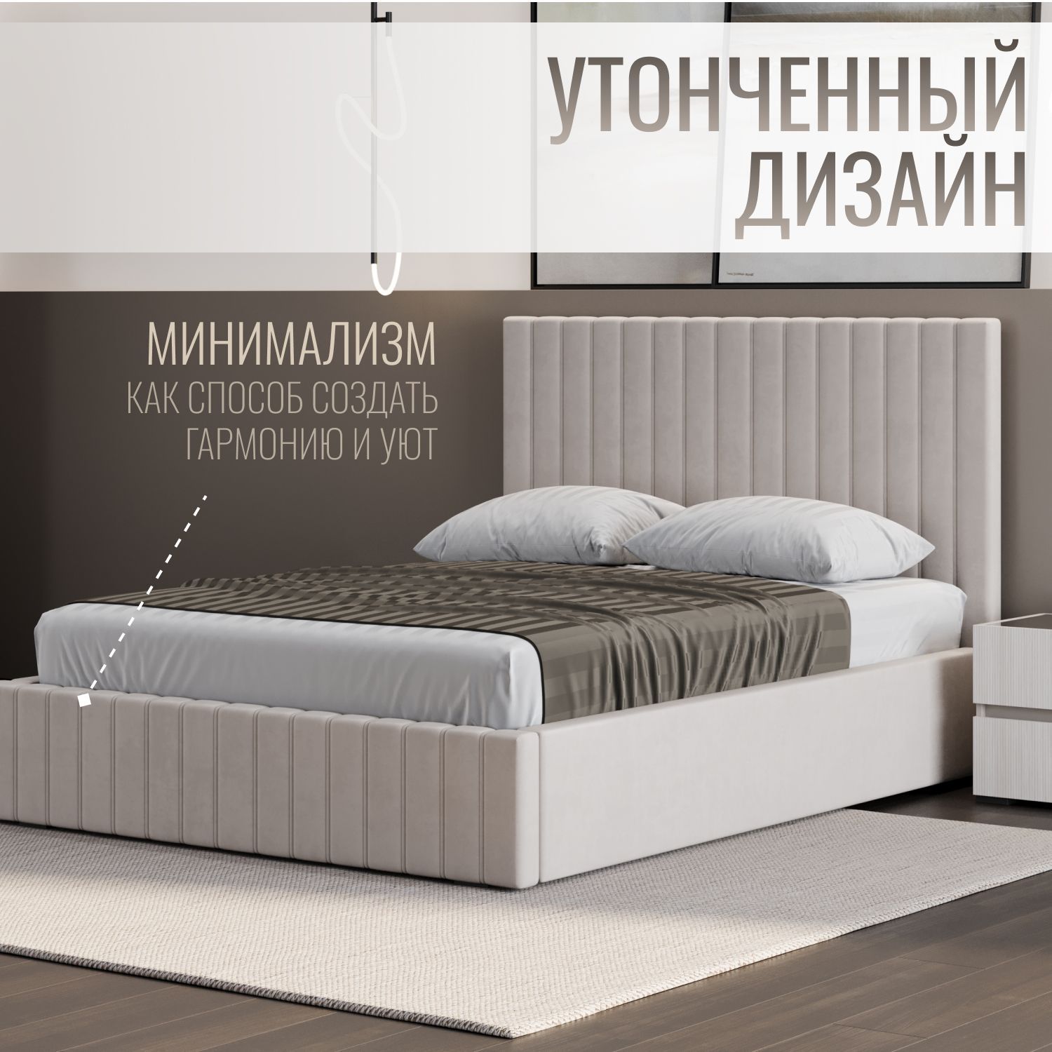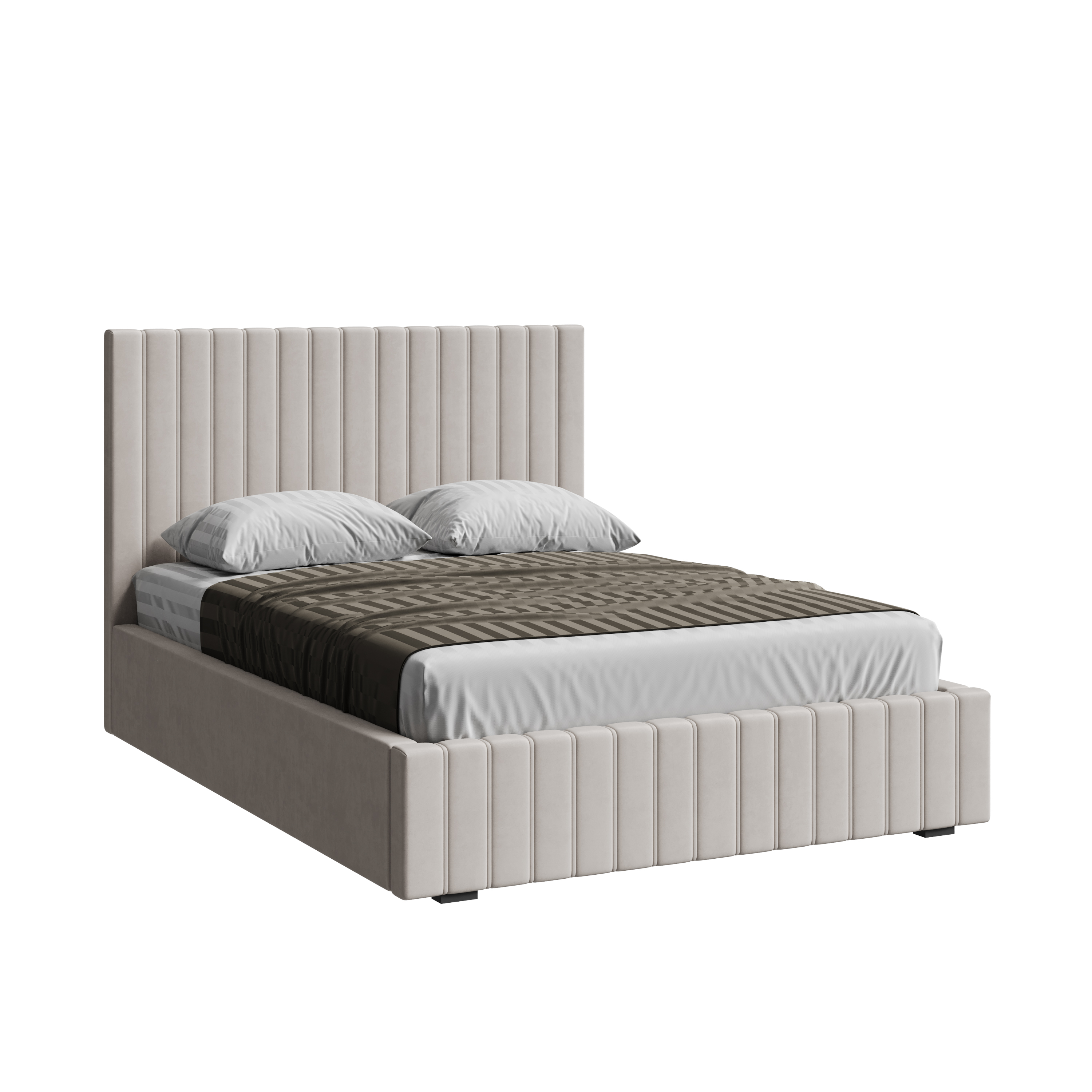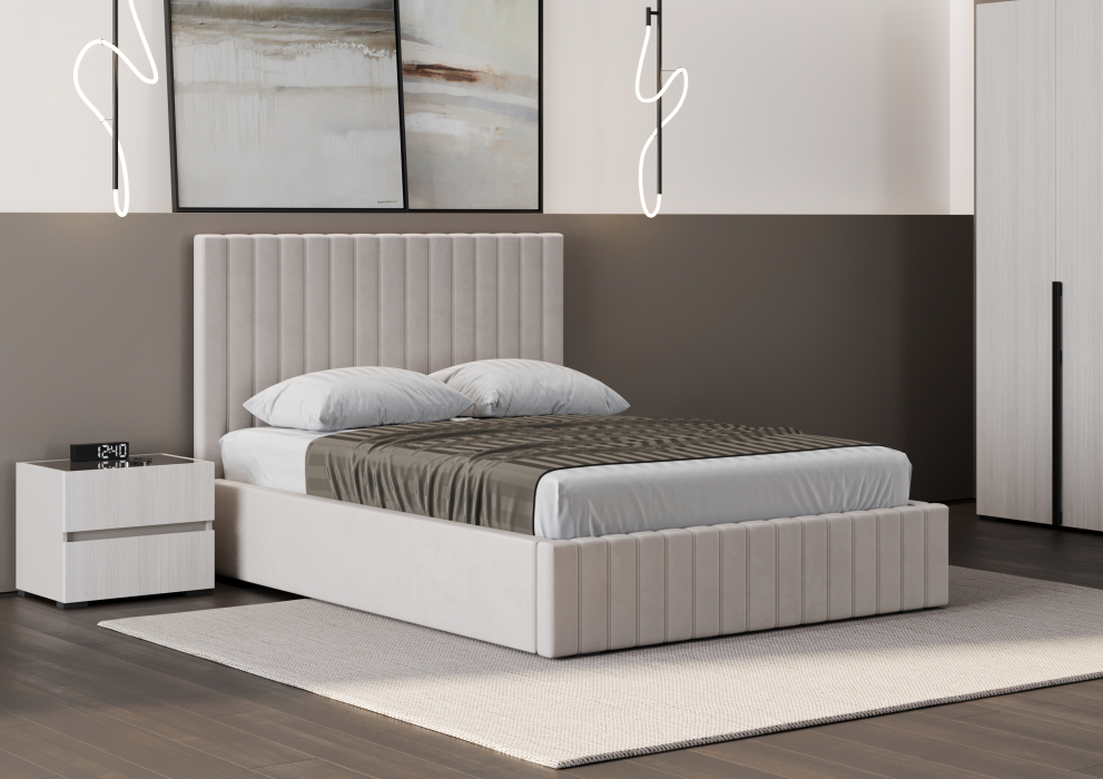 Кроме того, благодаря своей конструкции кровать не собирает пыль под собой, что облегчает уборку и поддержание чистоты. Кровать оснащена усиленным основанием, что гарантирует надёжность и долговечность. Доступна в трёх элегантных цветах: бежевый, серый и коричневый, чтобы удовлетворить любые предпочтения и требования вашего интерьера.