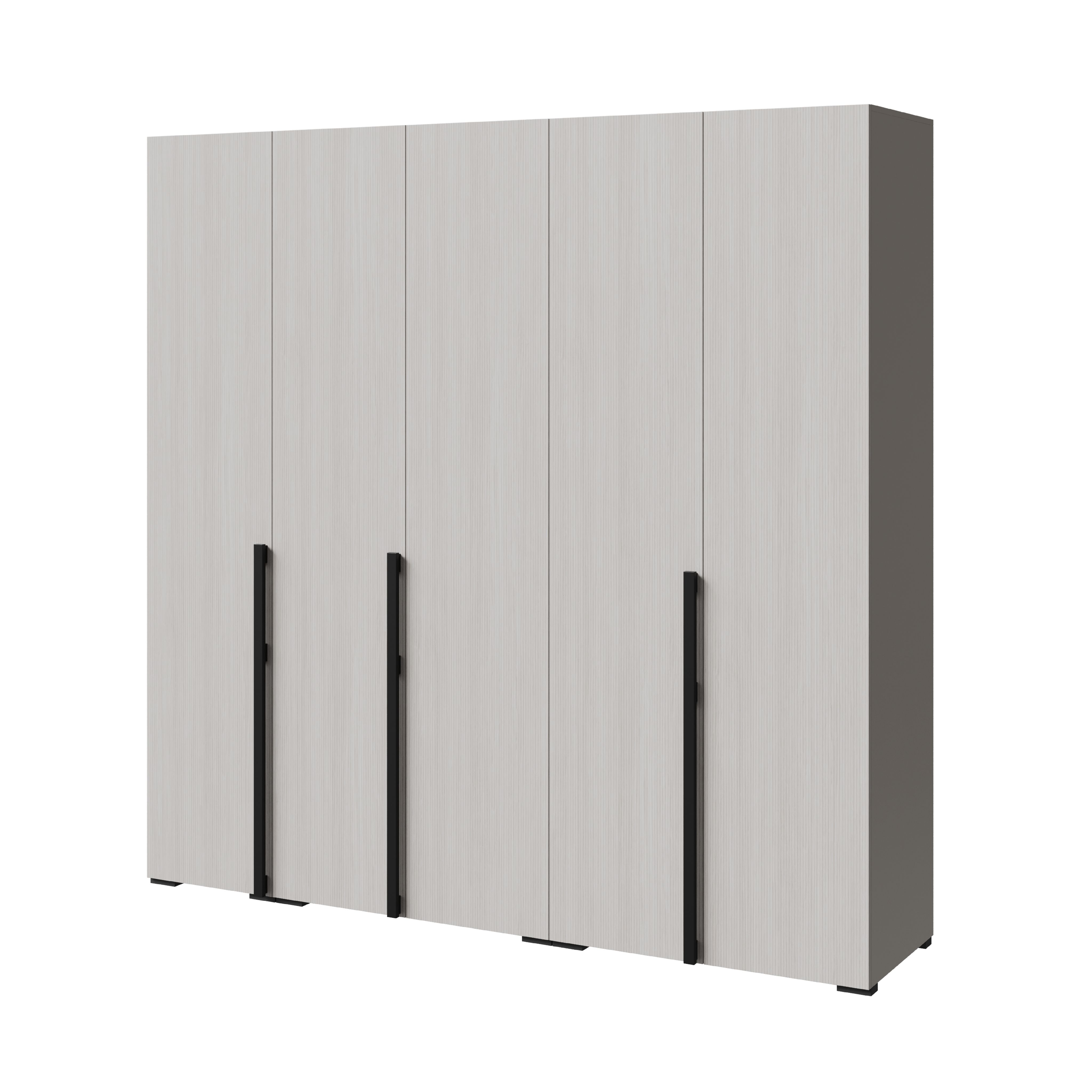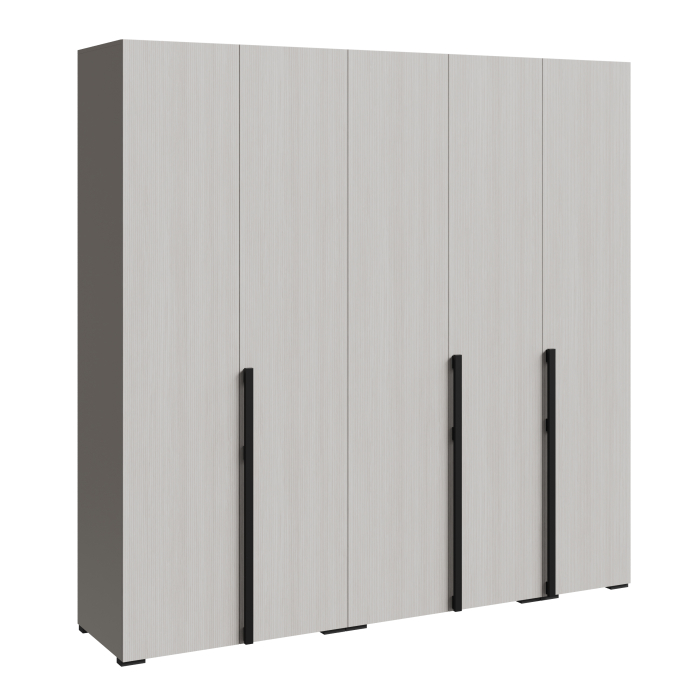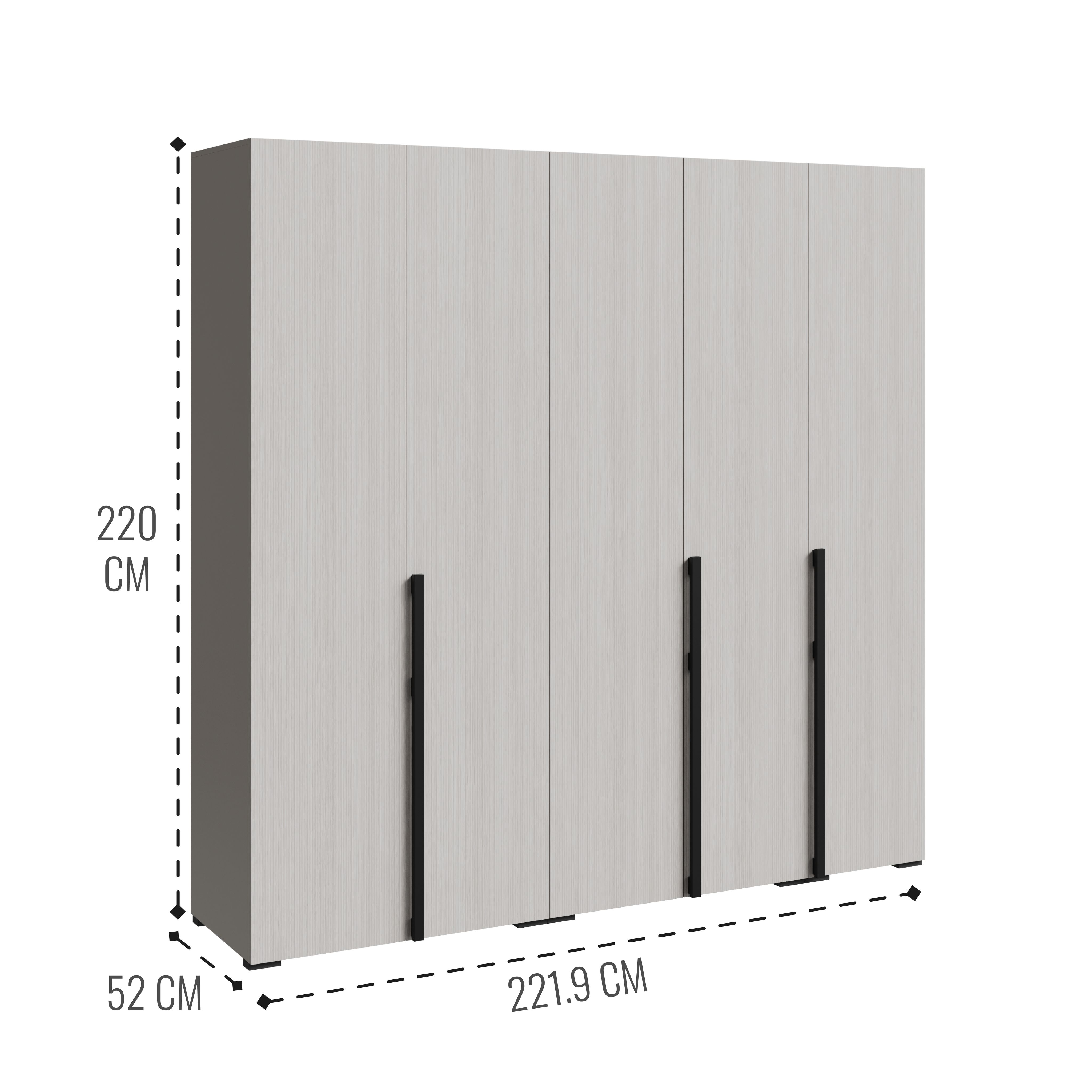 Этот 5-дверный шкаф отличается высоким качеством материалов и продуманным дизайном. Он не только вместителен, но и функционален: внутри вы найдете множество полок, которые позволят удобно организовать хранение одежды, обуви и аксессуаров. Кроме того, шкаф оснащен ящиками, в которых можно разместить мелкие вещи, такие как белье или украшения, что сделает ваш быт более комфортным.