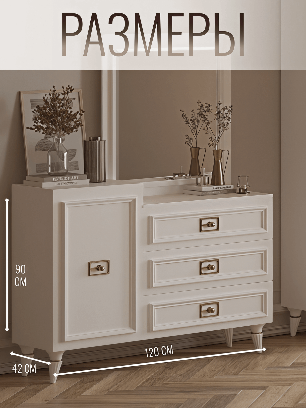 Отзывы о Столплит Комод Валенсия 120х42x90 см золото Белый