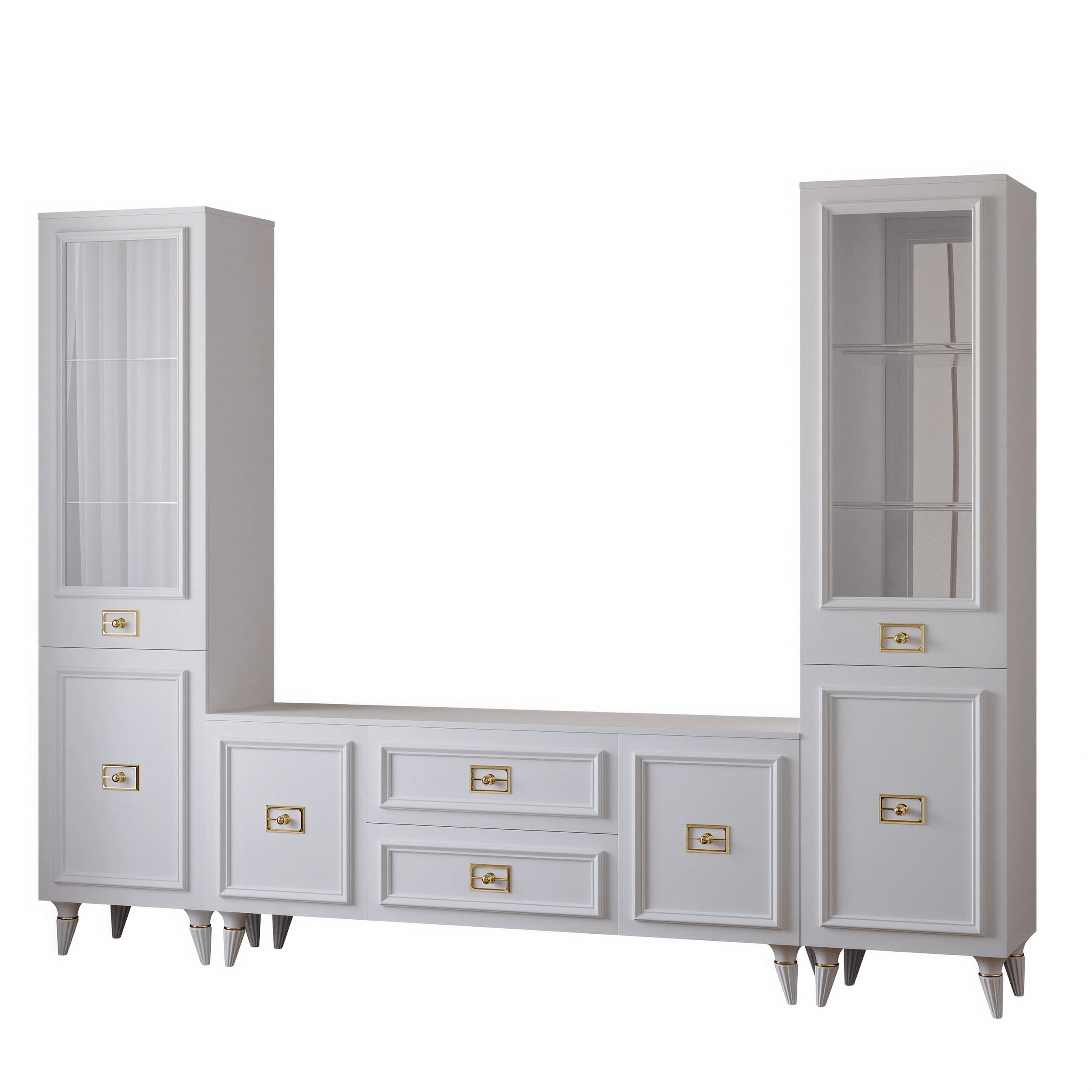 Представляем вам изысканную тумбу ТВ в стиле неоклассика, созданную для тех, кто ценит элегантность и изысканность в каждой детали. Этот функциональный и стильный предмет мебели станет идеальным дополнением вашего интерьера, придавая ему атмосферу роскоши и утонченности. Тумба изготовлена из высококачественного ЛДСП, обладает не только привлекательным внешним видом, но и долговечностью. Материал обеспечивает надежность конструкции и устойчивость к механическим повреждениям, что делает её идеальным выбором для долгосрочного использования. Специально разработанная конструкция тумбы обеспечивает оптимальное размещение телевизора и другой мультимедийной техники. Ящики и полки предоставляют достаточно места для хранения дисков, пультов управления и других необходимых аксессуаров. Тумба для ТВ отличается изысканными декоративными элементами, добавляющими изысканности и уникальности. Её изогнутые линии, изящные резные узоры и изумительная отделка создают гармоничное сочетание с современной техникой, добавляя интерьеру неповторимого шарма. Если вы ищете мебель, которая объединяет в себе функциональность, стиль и качество, тумба для ТВ в стиле неоклассика из ЛДСП – идеальное решение. Позвольте этой тумбе подчеркнуть уникальность вашего пространства и создать атмосферу уюта и роскоши одновременно.