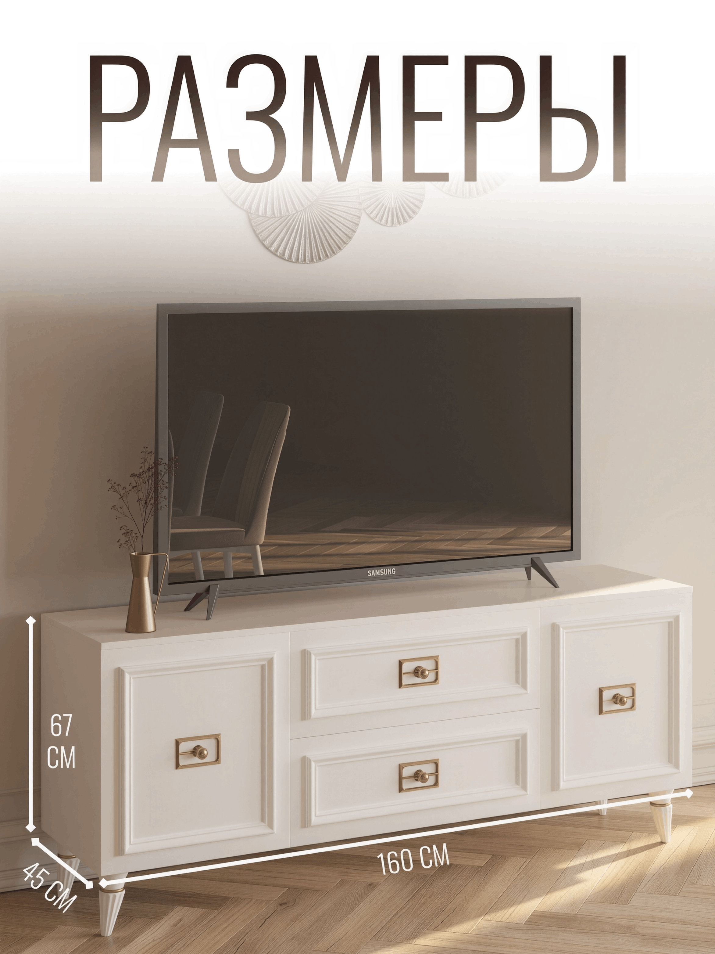 Отзывы о Столплит Комод Валенсия под телевизор 160х45х67 см золото Белый