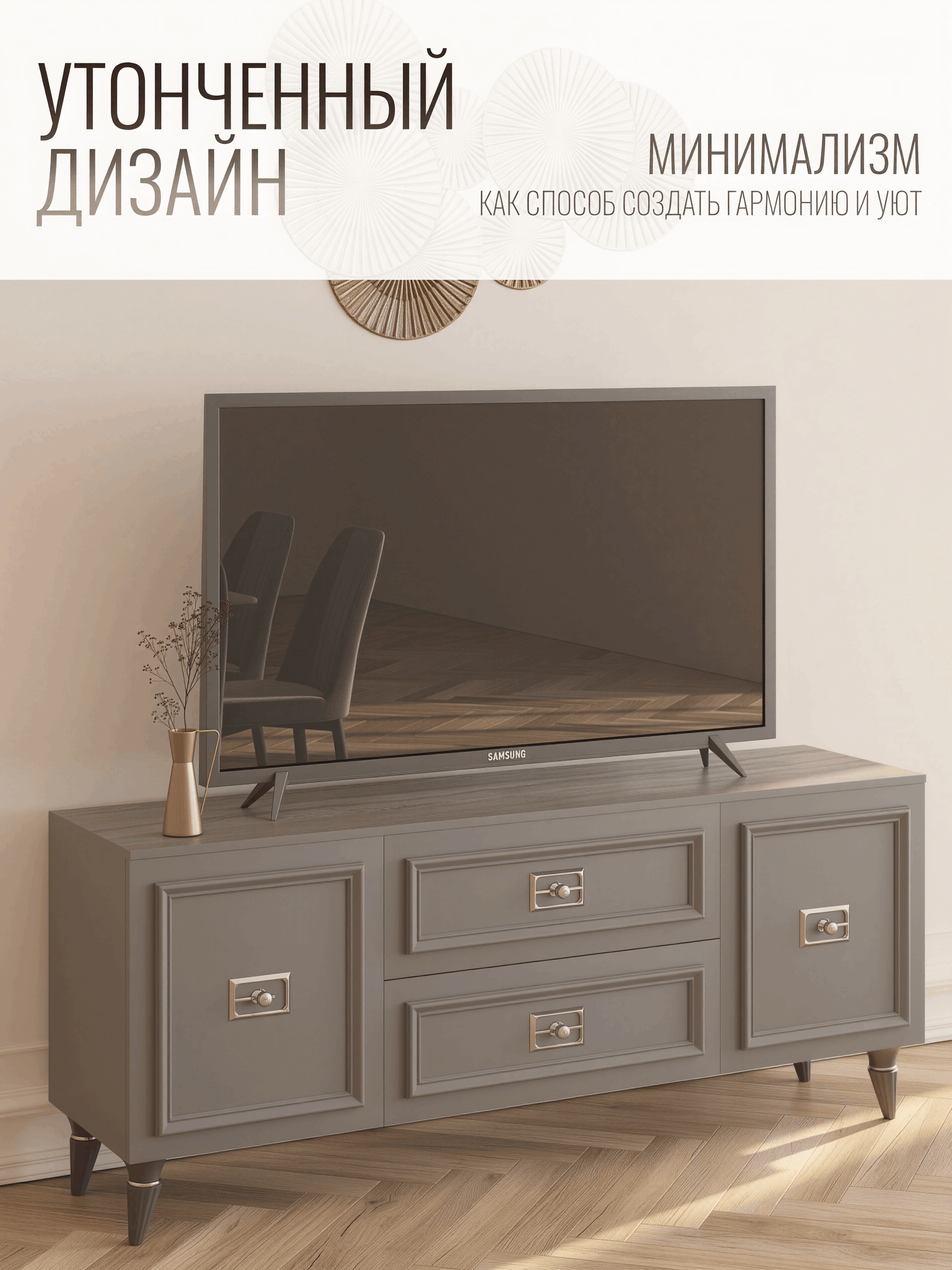 Отзывы о Столплит Комод Валенсия под телевизор 160х45х67 см серебро Серый