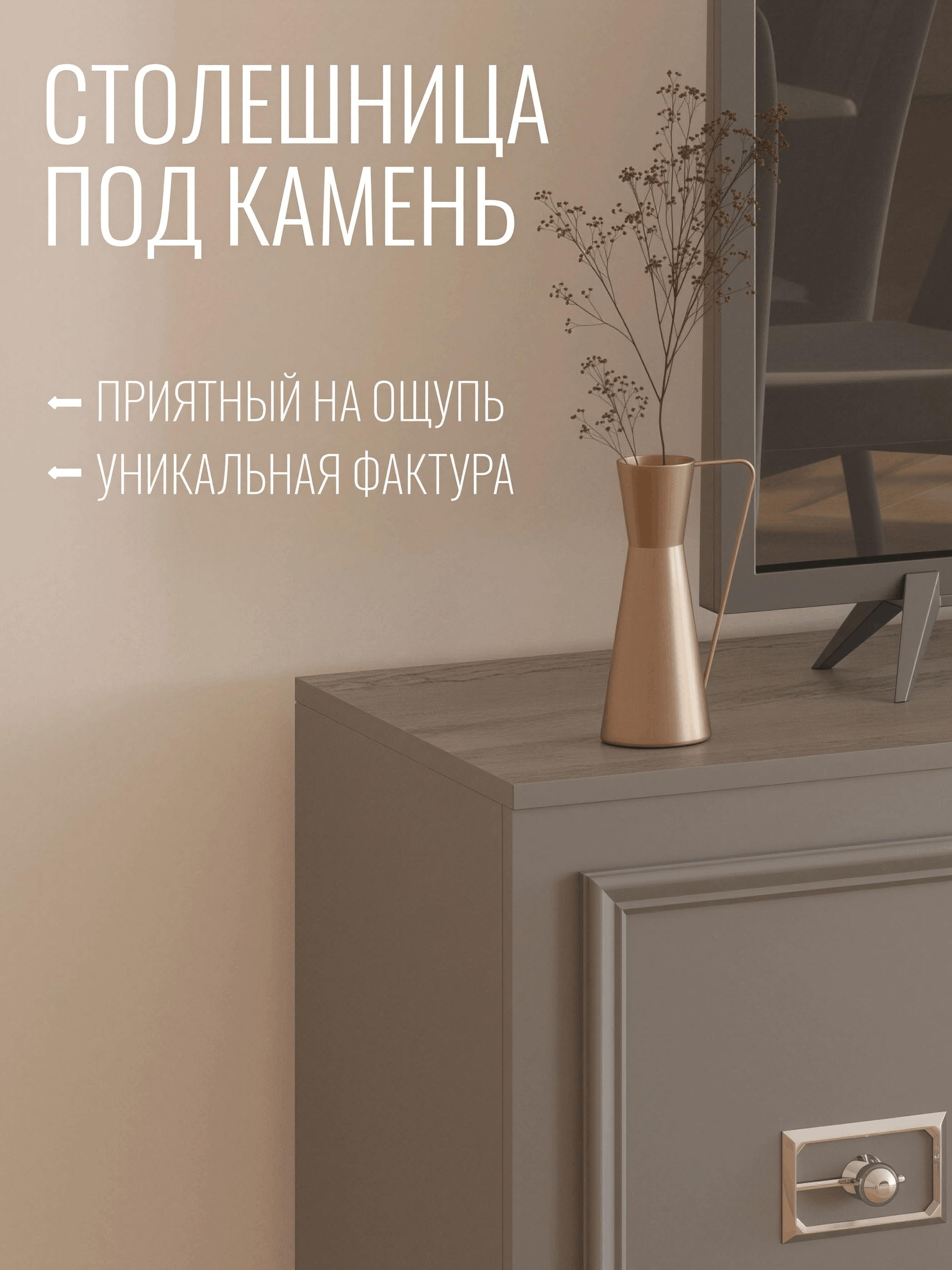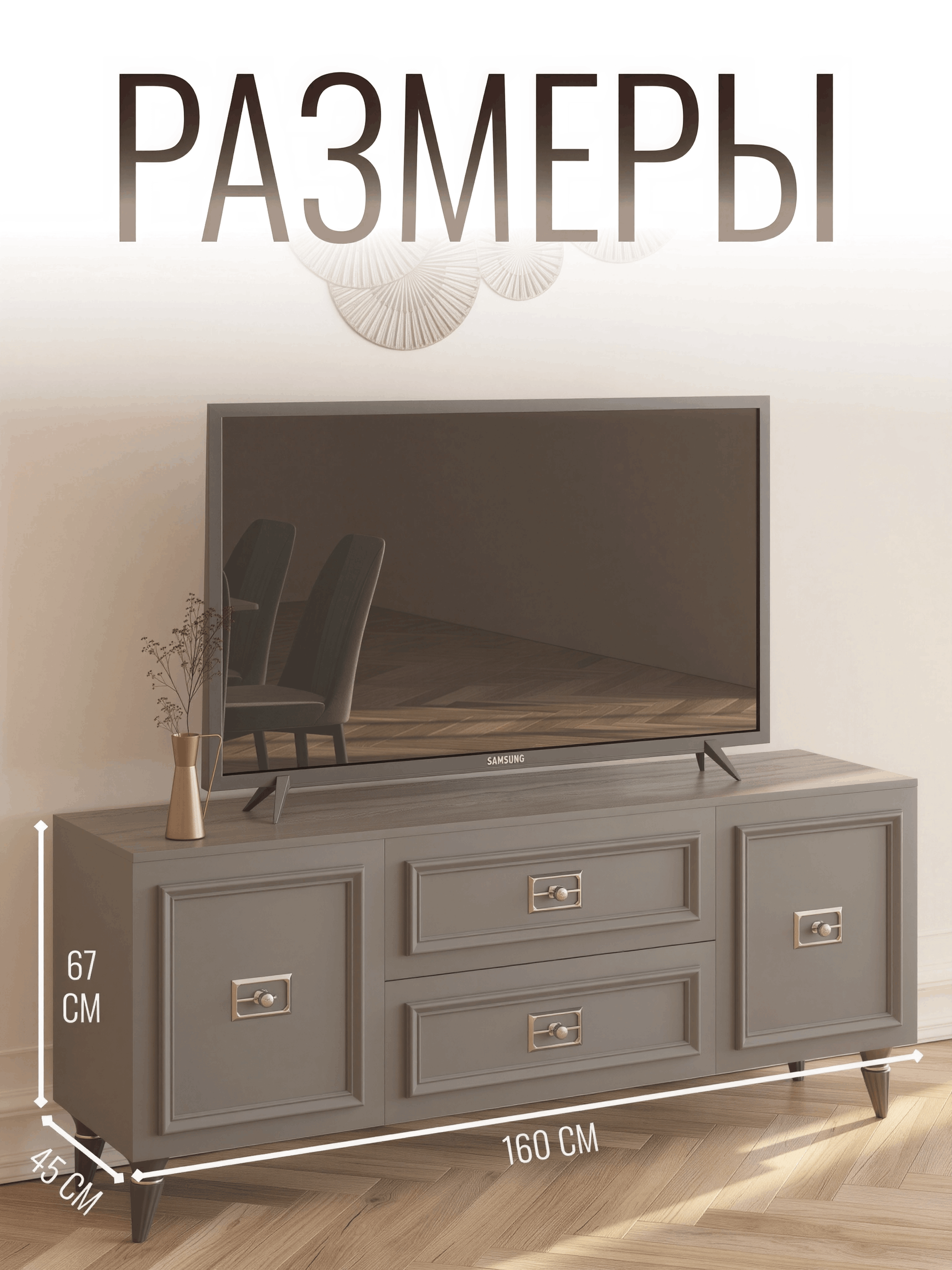 Представляем вам изысканную тумбу ТВ в стиле неоклассика, созданную для тех, кто ценит элегантность и изысканность в каждой детали. Этот функциональный и стильный предмет мебели станет идеальным дополнением вашего интерьера, придавая ему атмосферу роскоши и утонченности. Тумба изготовлена из высококачественного ЛДСП, обладает не только привлекательным внешним видом, но и долговечностью. Материал обеспечивает надежность конструкции и устойчивость к механическим повреждениям, что делает её идеальным выбором для долгосрочного использования. Специально разработанная конструкция тумбы обеспечивает оптимальное размещение телевизора и другой мультимедийной техники. Ящики и полки предоставляют достаточно места для хранения дисков, пультов управления и других необходимых аксессуаров. Тумба для ТВ отличается изысканными декоративными элементами, добавляющими изысканности и уникальности. Её изогнутые линии, изящные резные узоры и изумительная отделка создают гармоничное сочетание с современной техникой, добавляя интерьеру неповторимого шарма. Если вы ищете мебель, которая объединяет в себе функциональность, стиль и качество, тумба для ТВ в стиле неоклассика из ЛДСП – идеальное решение. Позвольте этой тумбе подчеркнуть уникальность вашего пространства и создать атмосферу уюта и роскоши одновременно.