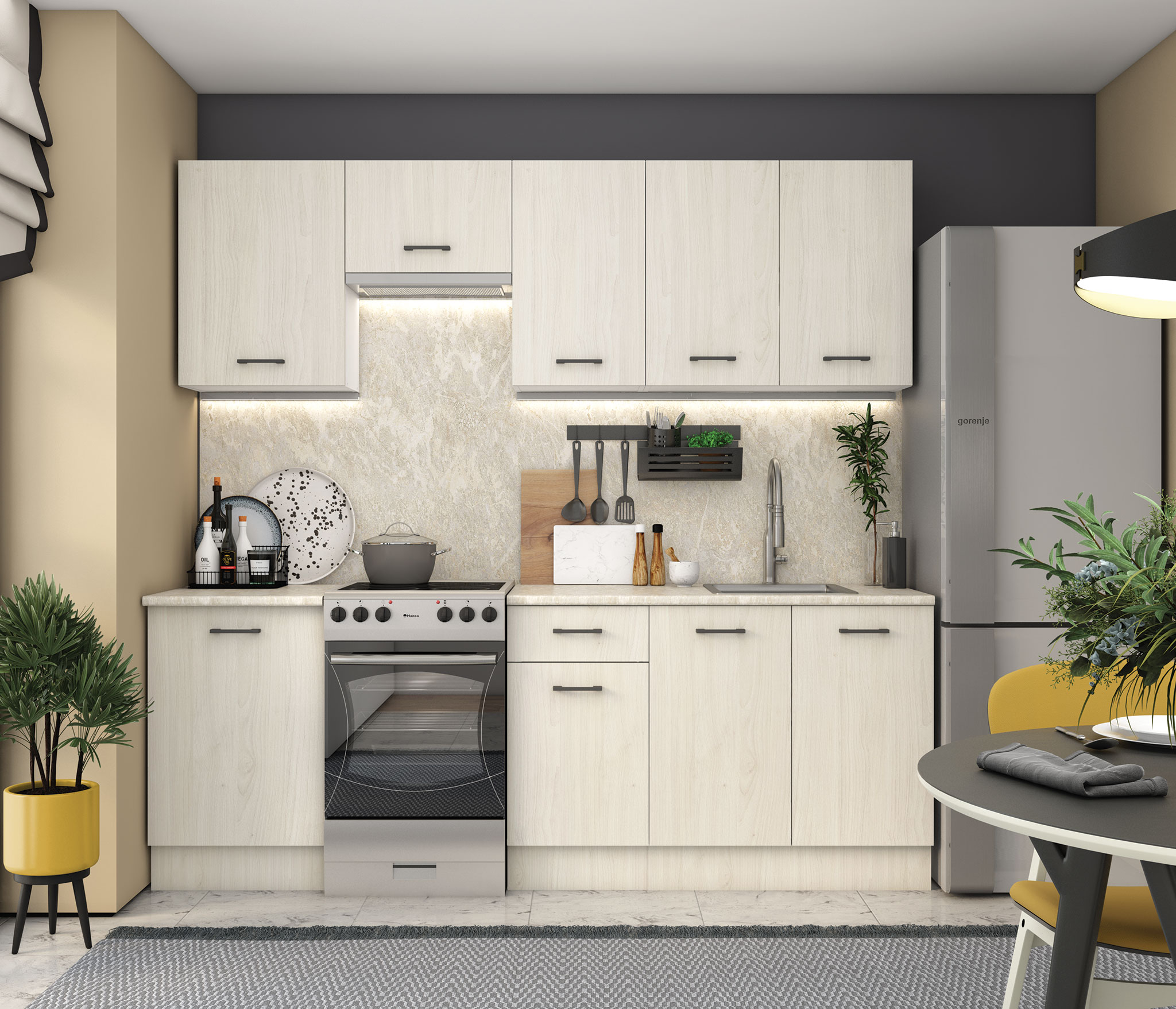 Кухонный гарнитур Иола 2,3 м (Скандинавское дерево белое) Код I0000451026