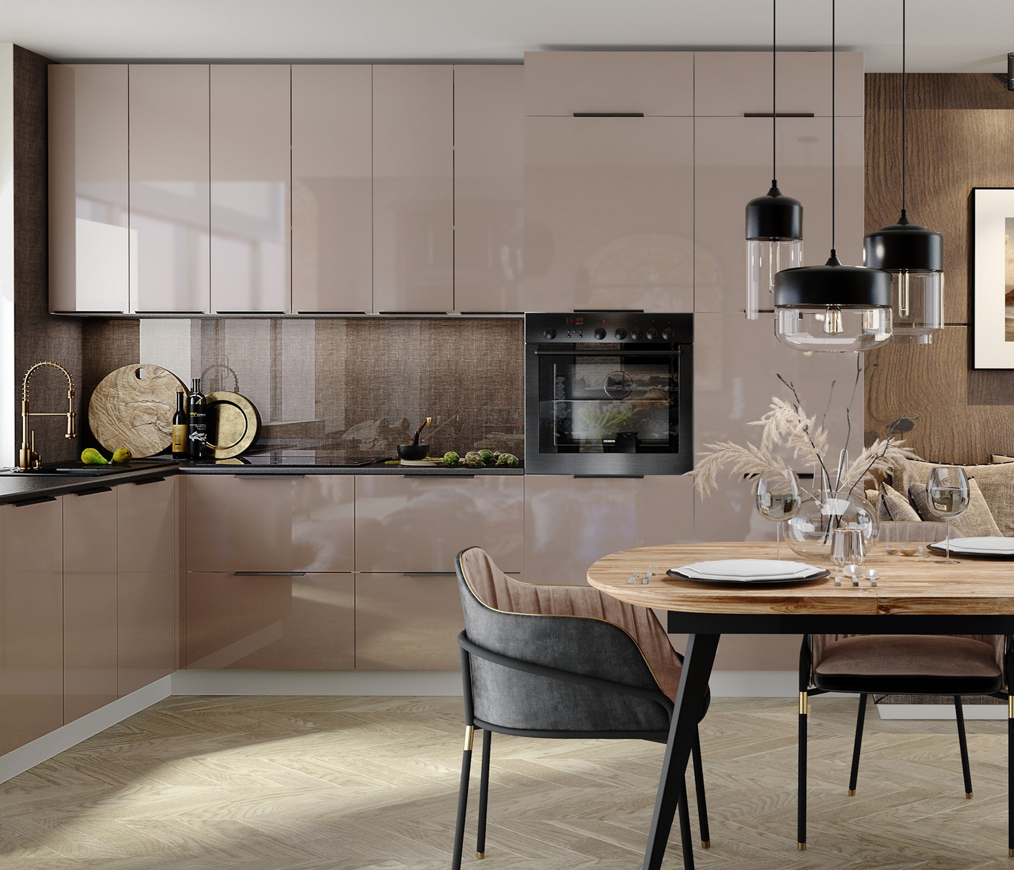 Возможность организации Г-образной или П-образной композиции, что оптимально для просторных кухонь
