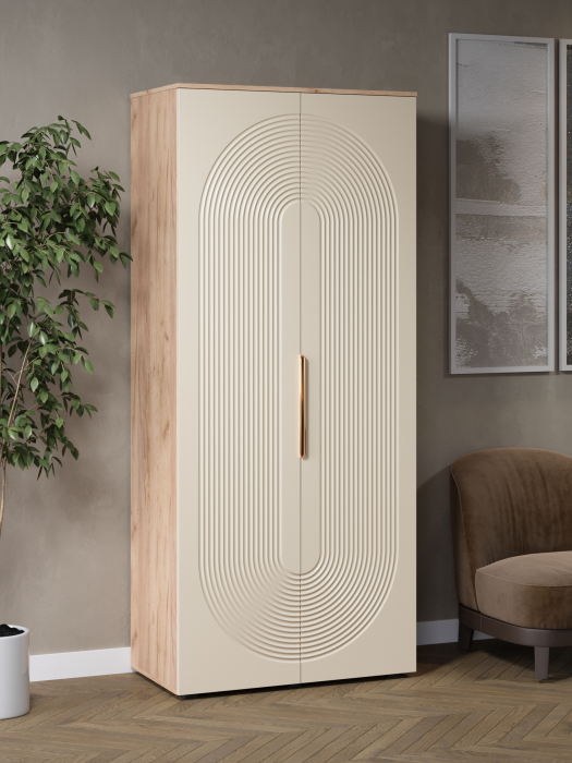 Стильный и практичный распашной шкаф для одежды, решит как минимум две ваших задачи, будет служить многофункциональной нишей для одежды и белья, а также удобным и полезным дополнением в интерьере. Наша модель Ингрия Luxe российского производства выглядят легко и современно, идеально впишется в лофт, скандинавский, современный, минимализм и прочие популярные стили интерьеров. Его минималистичный дизайн придадут легкость и простор всему вашему интерьеру. Шкаф напольный, компактный узкий шкаф сэкономит пространство и организует грамотное хранение вещей в доме. Распашной шкаф (шифонер) для спальни имеет полои и штангу, двери распашные. Ножки изготовлены из прочного массива дерева. Шкаф изготовлен из материалов высокого качества. За высокопрочность и долговечность отвечает корпус, выполненный из ЛДСП, подходит для активного использования. За эстетику и лаконичность дизайна отвечает фасад из МДФ созданный путем сложной фрезеровки в виде геометрического 3D рисунка. Накладная алюминиевая ручка подчеркнет монолитный образ. Длинный высокий шкаф пенал поставляется в разобранном виде, пусть это вас не пугает. В комплекте предусмотрены все необходимые комплектующие, подробная инструкция и фурнитура. Сборка не потребует особых навыков и не отнимет много времени.Современная корпусная мебель для дома должна не только брать на себя пару задач по организации пространства, но и гармонично смотреться, выполняя нужные нам функции. Поэтому шкаф для прихожей можно использовать в разных помещениях в гостиной, спальне, прихожей (коридоре), в детской, в офисе, в салоне красоты, на балконе. Он справится со всеми возложенными на него функциями. Используйте шкаф купе, как модуль мебельный под аксессуары, коробки с обувью, как нишу для детских книг и игрушек.Перед отправкой мебели, каждое изделие проходит проверку на наличие брака. Для целостности и сохранности каждого изделия мы разработали усиленную, надежную упаковку. Европейское качество от российского производителя - по доступным ценам.