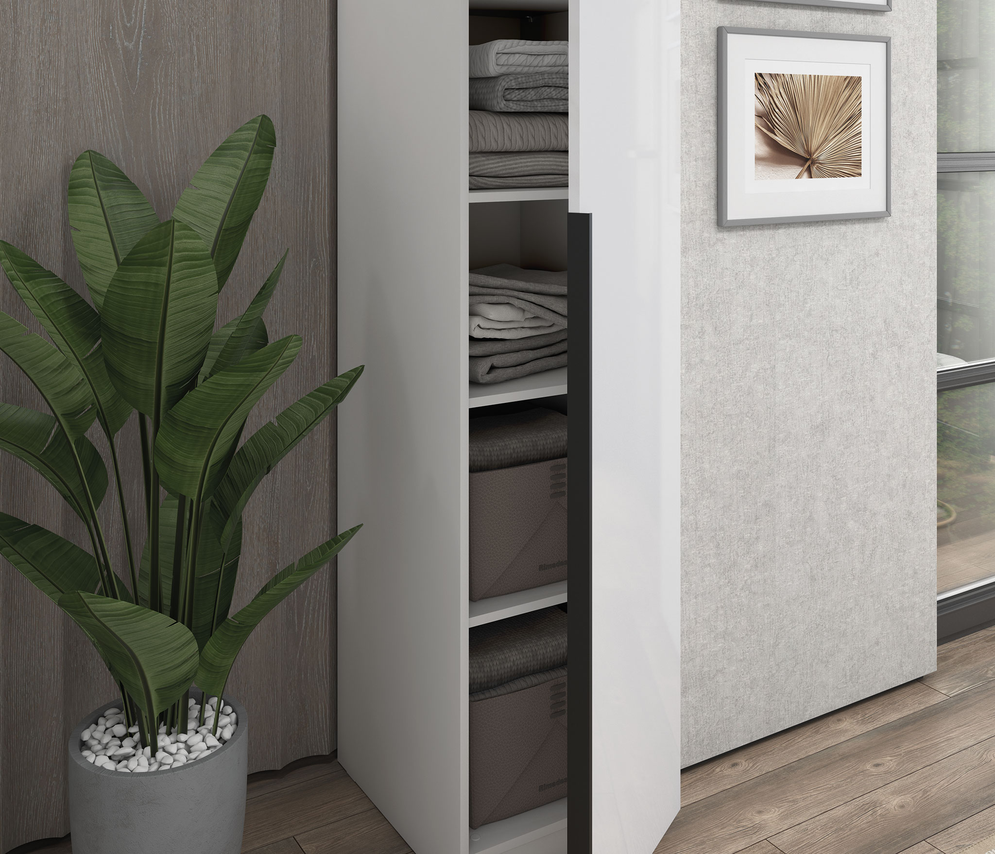 Коллекция шкафов «Люкс» - это линейка современных шкафов для тех, кто ценит эффектный внешний вид и продуманную функциональность. Мебель выполнена в актуальной комбинированной гамме: корпус в цветах Белый и Дуб крафт сочетается с фасадами Белый глянец, что позволяет легко вписать шкафы в светлый современный интерьер и визуально расширить пространство. Фасады покрыты глянцевым лаком, который обеспечивает высокий уровень блеска, создаёт эффект глубины и мягкого отражения света. Благодаря этому шкафы выглядят более объёмными и «воздушными». Фурнитура и конструктивные решения: • Петли с доводчиками - мягкое и бесшумное закрывание дверей; • Скрытые регулируемые опоры (ножка 50-70 мм под цоколь с упором на боковину) для точной установки шкафа по уровню; • Пластиковые опоры чёрного цвета, обеспечивающие устойчивость и аккуратный внешний вид цокольной зоны. • Размер полок - 418 х 490 х 16 мм Шкафы коллекции «Люкс» позволяют подобрать решения разных размеров и конфигураций, сохраняя общий стиль - глянец, лёгкость и аккуратный современный дизайн.