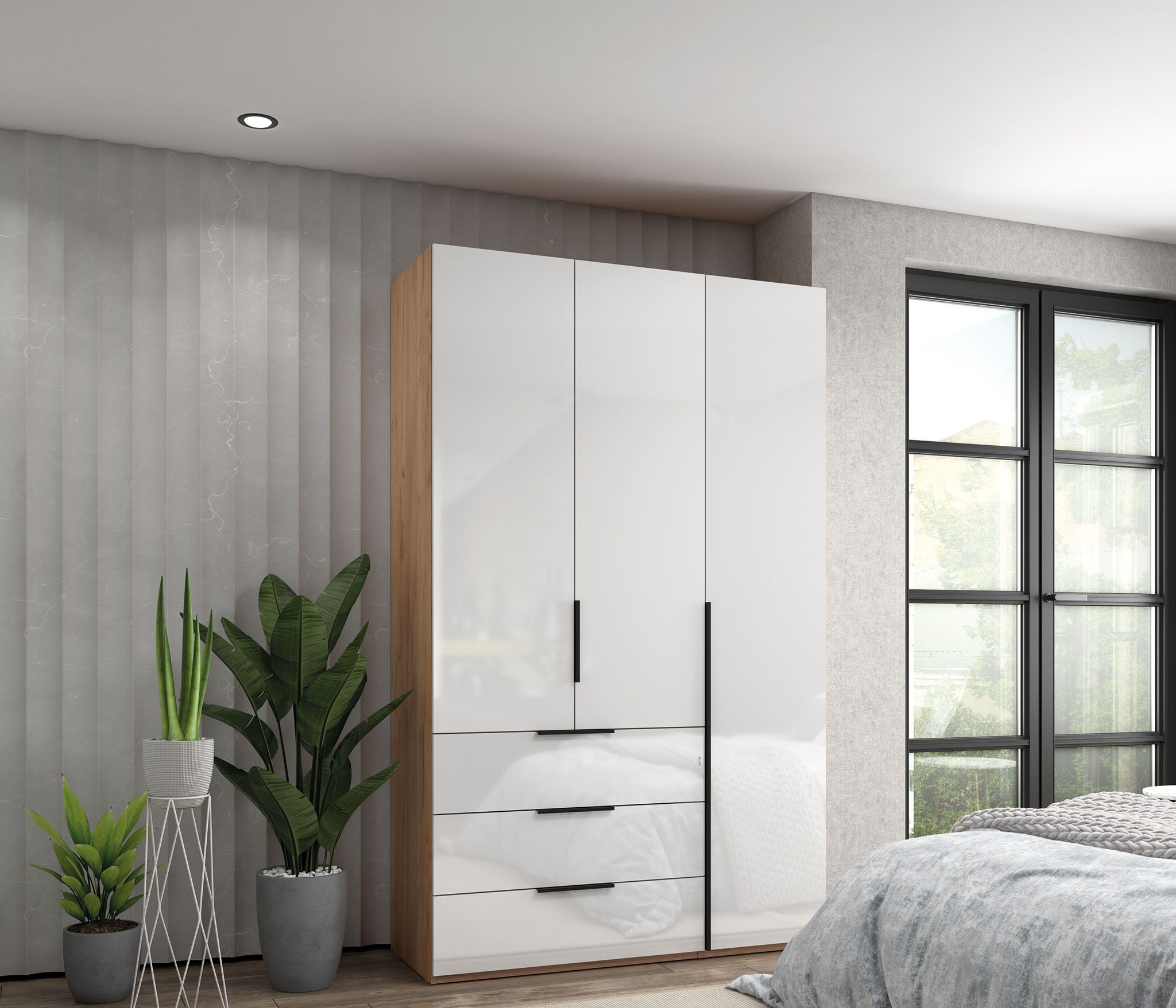 Коллекция шкафов «Люкс» - это линейка современных шкафов для тех, кто ценит эффектный внешний вид и продуманную функциональность. Мебель выполнена в актуальной комбинированной гамме: корпус в цветах Белый и Дуб крафт сочетается с фасадами Белый глянец, что позволяет легко вписать шкафы в светлый современный интерьер и визуально расширить пространство. Фасады покрыты глянцевым лаком, который обеспечивает высокий уровень блеска, создаёт эффект глубины и мягкого отражения света. Благодаря этому шкафы выглядят более объёмными и «воздушными». Фурнитура и конструктивные решения: • шариковые направляющие полного выдвижения - плавный и тихий ход выдвижных элементов и удобный доступ к содержимому; • Петли с доводчиками - мягкое и бесшумное закрывание дверей; • Скрытые регулируемые опоры (ножка 50-70 мм под цоколь с упором на боковину) для точной установки шкафа по уровню; • Пластиковые опоры чёрного цвета, обеспечивающие устойчивость и аккуратный внешний вид цокольной зоны. Дополнительные характеристики: Длина штанги для одежы- 868 мм Высота фасада выдвижного ящика - 236 мм Внутренний размер ящика - 825 х 455 х 139 мм Шкафы коллекции «Люкс» позволяют подобрать решения разных размеров и конфигураций, сохраняя общий стиль - глянец, лёгкость и аккуратный современный дизайн