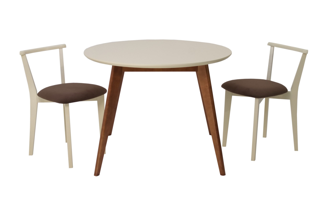 Комплект из деревянного стола Сканди на каркасе из натурального дерева и 2 стула Франк отлично подойдет к интерьеру, выдержанному в скандинавском стиле. Данный комплект станет центральным элементом в гостиной, столовой зоне, на кухне, позволив создать уютное обеденное место, где смогут собираться члены дружной семьи и их гости.У модели круглая форма столешницы. Такое решение исключит риск сколов и обеспечит безопасность, в том числе, детям.Комплект выполнен в красивой комбинации цветов - орех, слоновая кость. Сочетание изысканного дизайна и высокого качества исполнения - главная особенность комплекта.Столешница выполнена из материалов с великолепными эксплуатационными свойствами - МДФ (Материал создается на основе натуральной древесины. Практичен, надежен, имеет однородную гладкую структуру), шпон.Мебель проста в уходе - для поддержания первозданного вида достаточно использовать простую чуть влажную салфетку по мере необходимости.Состав комплекта:- стол F004111WUS- стулья R101709S04
