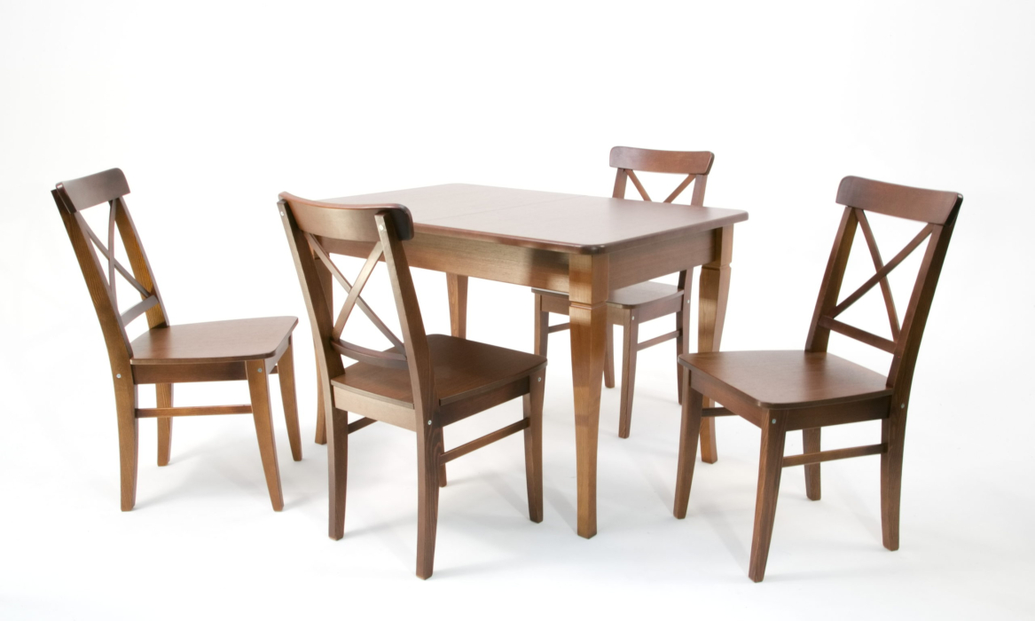 Комплект из деревянного стола Моцарт на каркасе из натурального дерева и 4 стульев Ингольф отлично подойдет к интерьеру, выдержанному в классическом или софременном стиле. Данный комплект станет центральным элементом в гостиной, столовой зоне, на кухне, позволив создать уютное обеденное место, где смогут собираться члены дружной семьи и их гости.У модели скругленные углы столешницы. Такое решение исключит риск сколов и обеспечит безопасность, в том числе, детям.Комплект выполнен в красивом  цвете - орех. Сочетание изысканного дизайна и высокого качества исполнения - главная особенность комплекта.Столешница выполнена из материалов с великолепными эксплуатационными свойствами - МДФ (Материал создается на основе натуральной древесины. Практичен, надежен, имеет однородную гладкую структуру), шпон.Мебель проста в уходе - для поддержания первозданного вида достаточно использовать простую чуть влажную салфетку по мере необходимости.