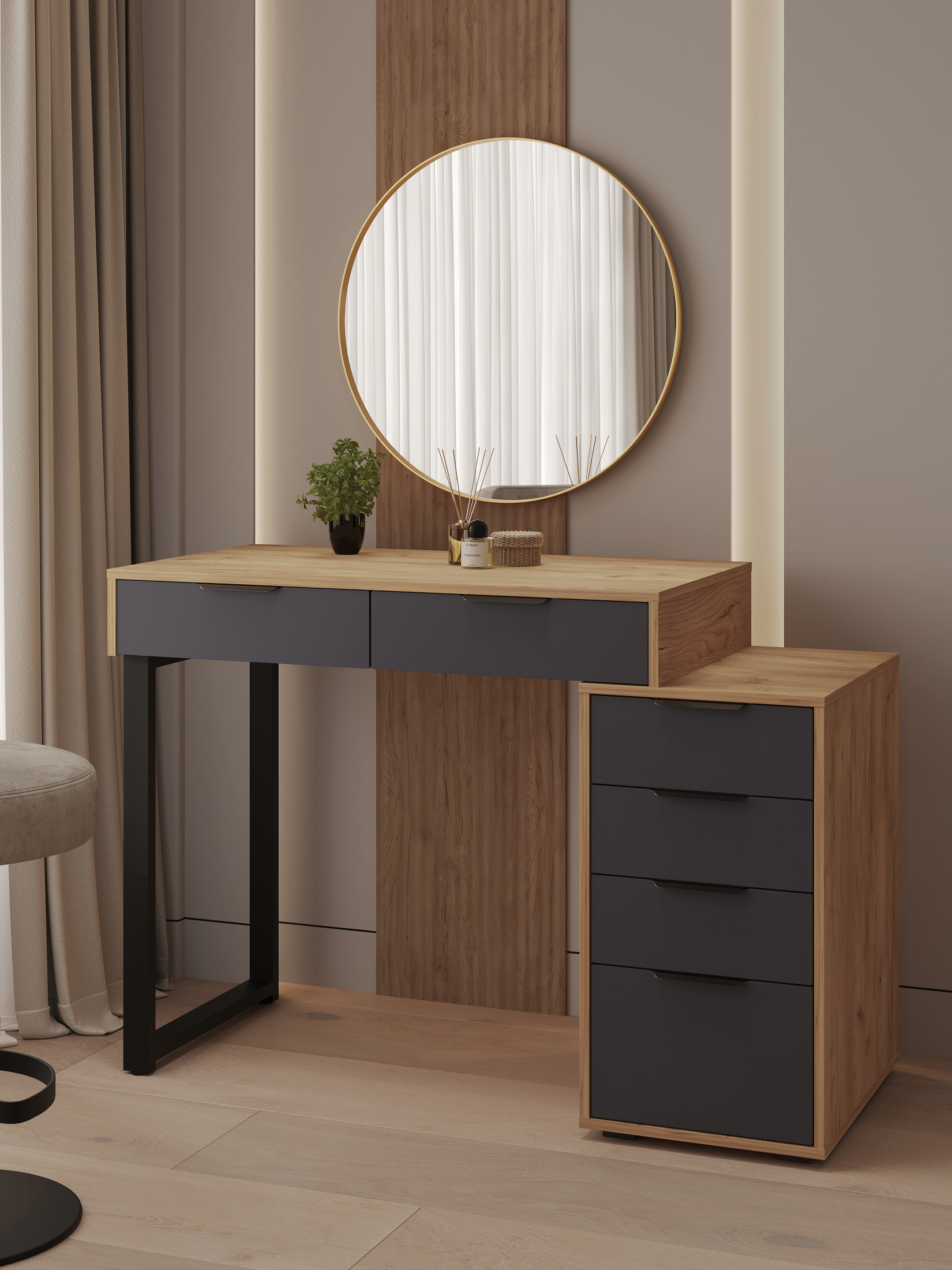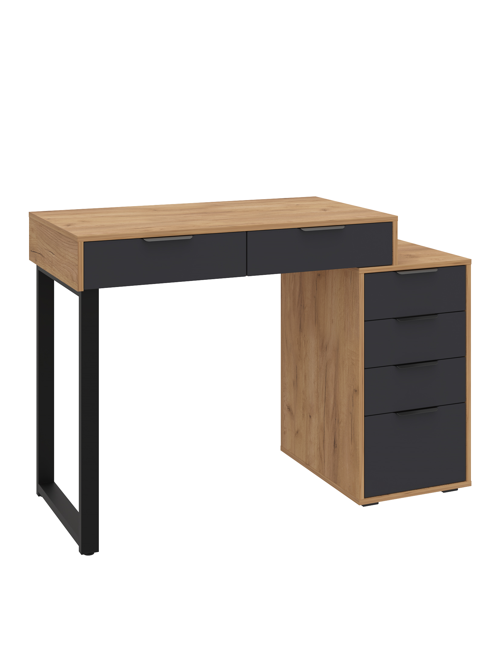 Универсальность: подходит для использования в качестве письменного, компьютерного или маникюрного стола. Рекомендуется высокий стул. Фурнитура: телескопические направляющие полного выдвижения без доводчиков, металлические ручки и опора.