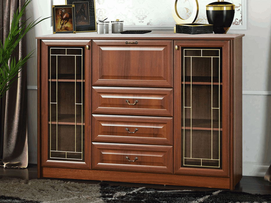 Классическая мебельная коллекция «Янна» - воплощение строгости и элегантности. Рамочные МДФ фасады и карнизы придают предметам мебели завершенный вид, наделяют их солидностью и изысканностью. Такая мебель смотрится благородно, дорого и стильно. В этой мебельной линейке все продумано до мелочей – как в эстетическом плане, так и в функциональном. Прочная металлическая фурнитура служит долго, ее не придется менять на новую. Направляющие полного выдвижения позволяют бесшумно и плавно открывать ящики. Кстати, ящики можно полностью заполнять любыми вещами и не бояться, что их дно провиснет: оно выполнено из прочной ДВП толщиной 3,2 мм. При изготовлении гарнитуров с витринами предусмотрено 2 вида фасадов: с лазерной гравировкой и декоративный витраж.
