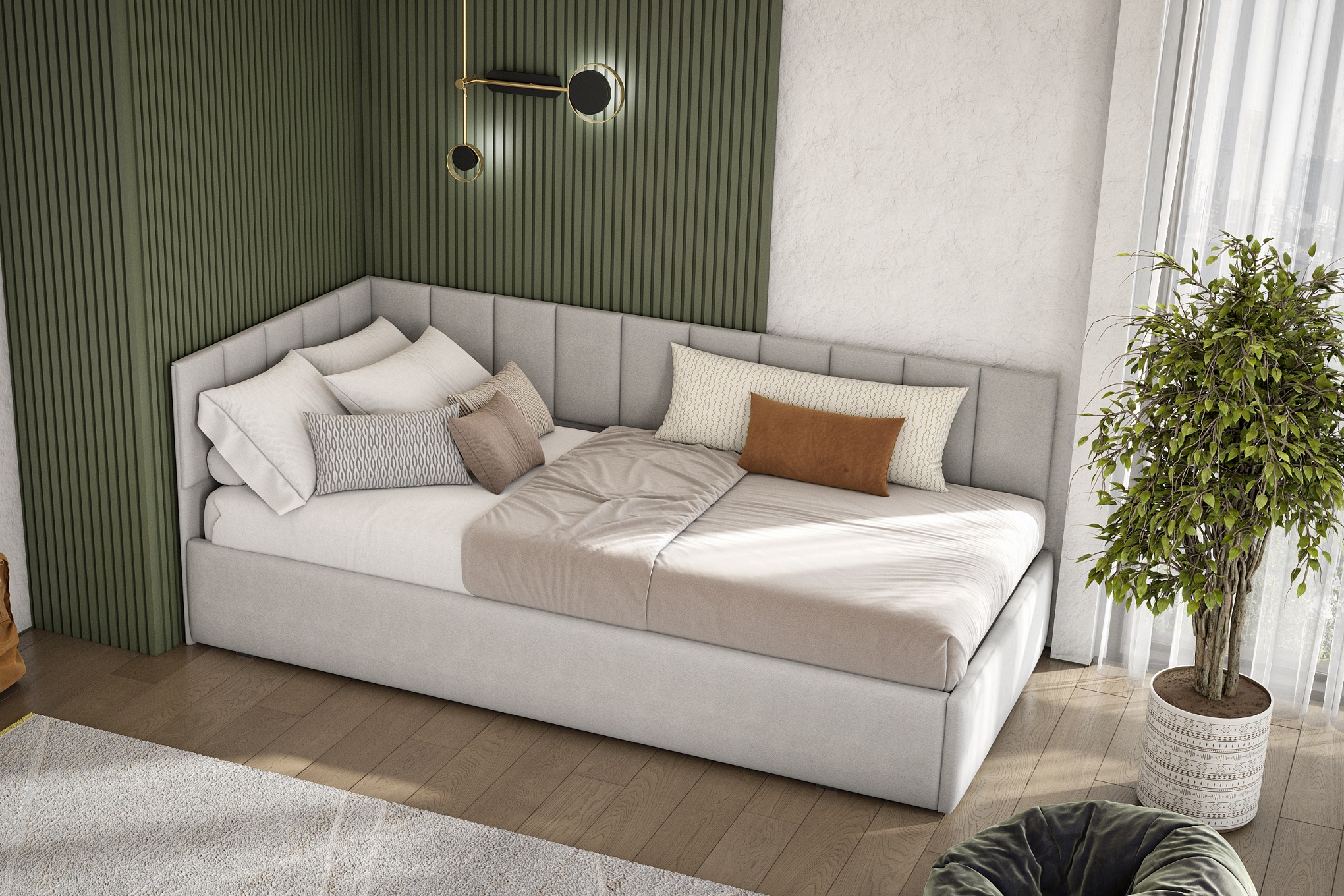 Кровать "КР 3" (0,9х2,0 мягкая) (филд светло серый) Код I0000455013