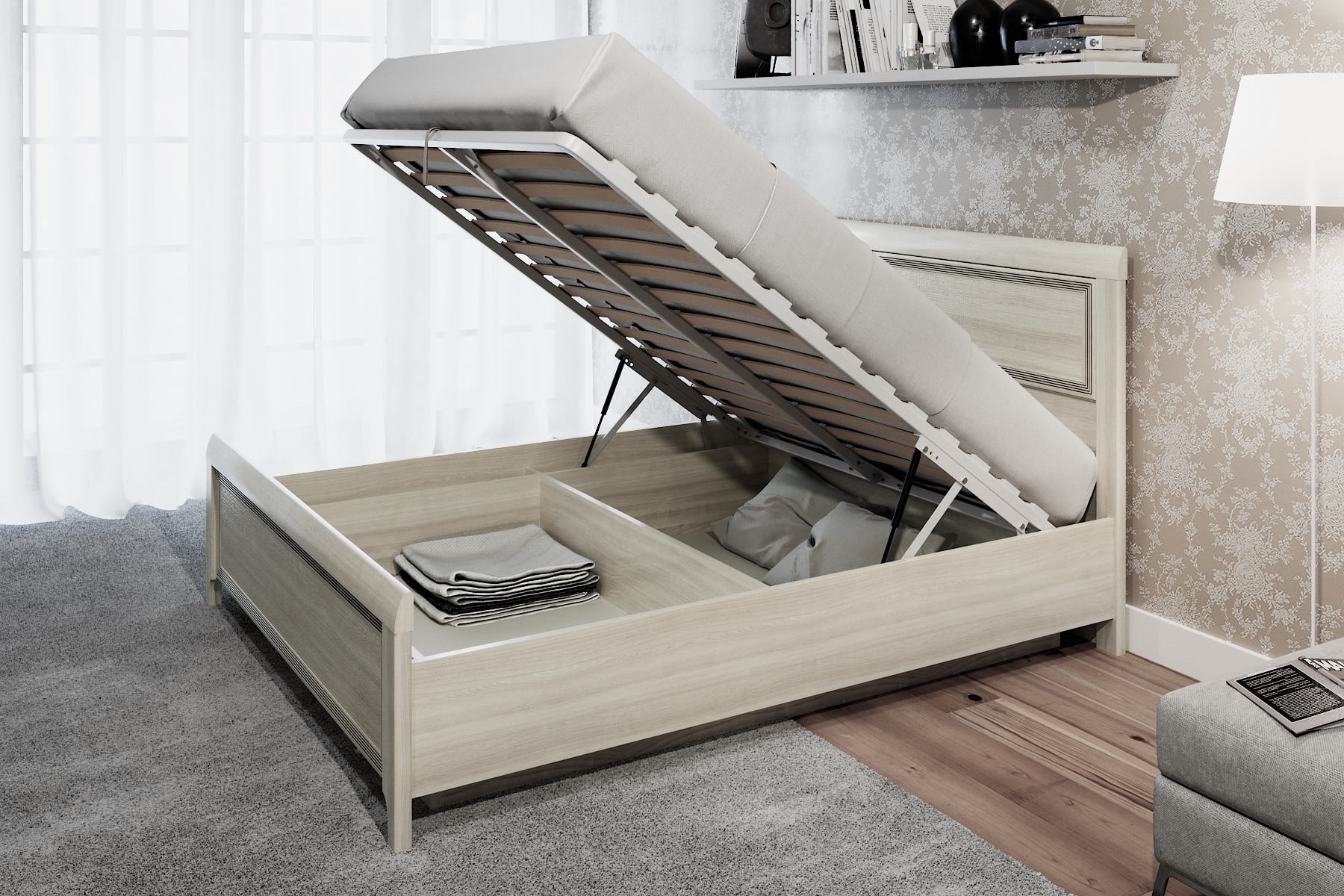 В комплекте кровать с подъемным механизмом.