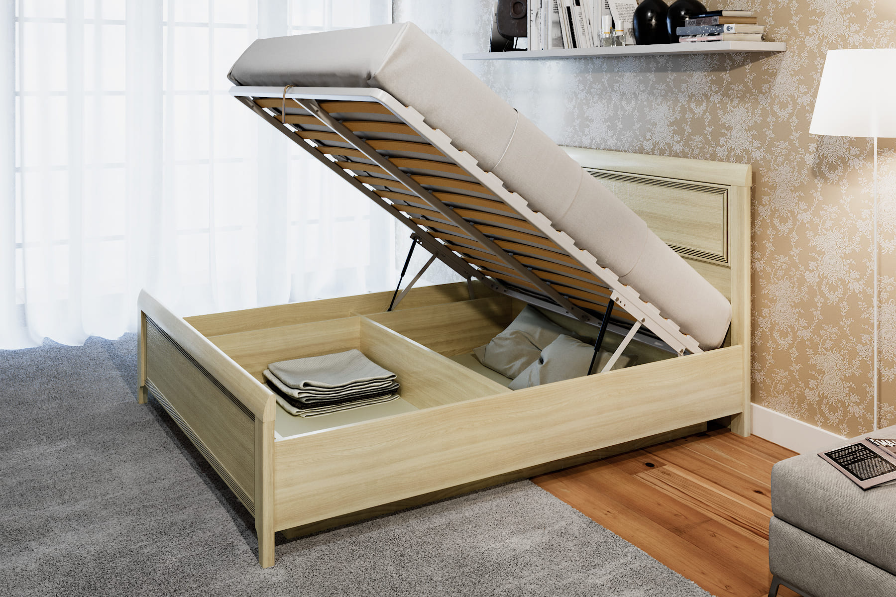 В комплекте кровать с подъемным механизмом.