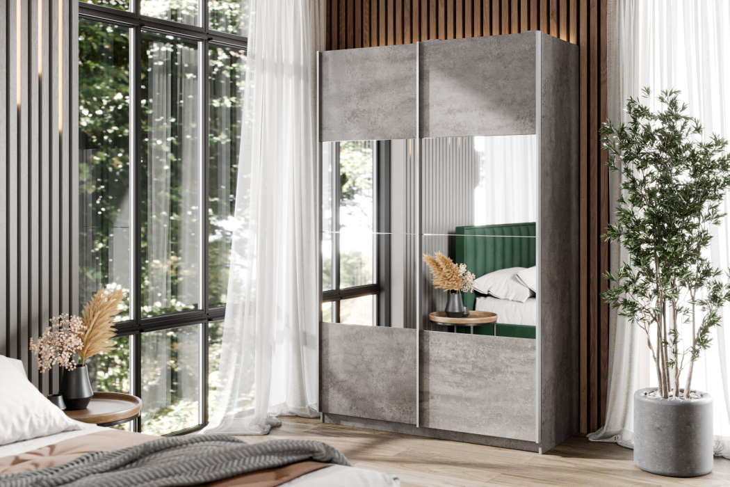 Шкаф-купе Smart 1624 2х дверный (фасады ЛДСП/зеркало) профиль серебро (Бетон)
