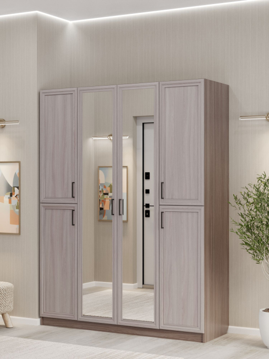 Шкаф распашной ШК‑4/3 — вместительное и функциональное решение для организации хранения в спальне, гостиной или прихожей. Четырёхдверный шкаф с тремя штангами и полками позволяет эффективно использовать пространство, сочетая эргономичность с высокой вместимостью. Фасад из МДФ и корпус из ЛДСП обеспечивают надёжность конструкции, долговечность и привлекательный внешний вид. Нейтральный дизайн шкафа органично вписывается в современные интерьеры разных стилевых направлений.