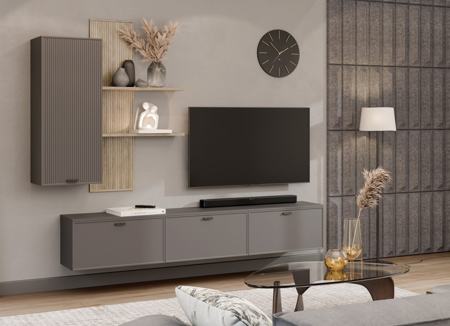 Модульная гостиная Стелла композиция 6 (Серый Оникс Ребристый/Гикори Светлый Ребристый) Код I0000455647