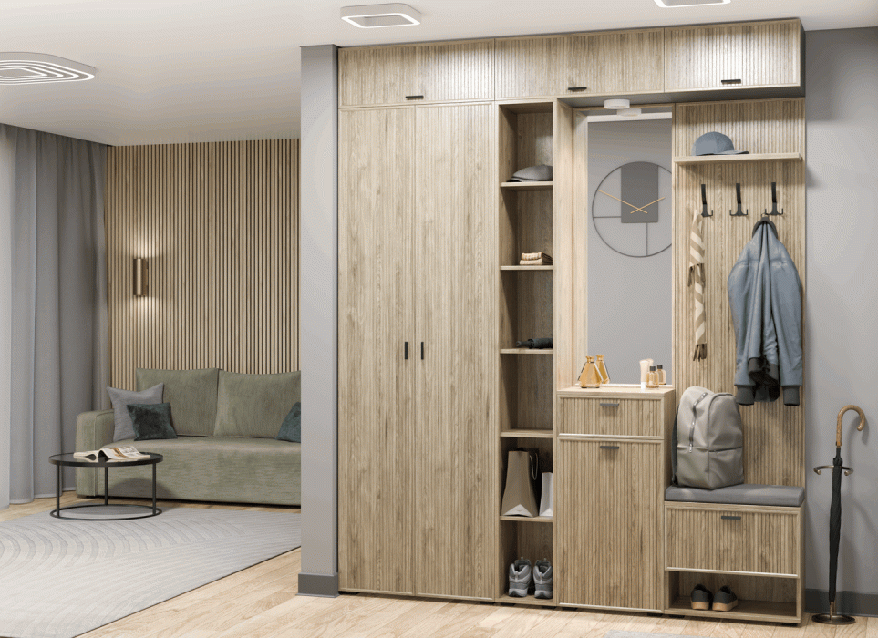 Прихожие СТЕЛЛА воплощают в себе актуальные тенденции мировой мебельной моды и позволяют создавать функциональные интерьеры в современном стиле, обеспечивающие высокий уровень комфорта. Сочетание нейтральных фоновых цветов и акцентных текстур дерева дают возможность открыть новые грани интерьера. Возможность использования различных вариантов вставки — дополнительное преимущество при планировании прихожей.