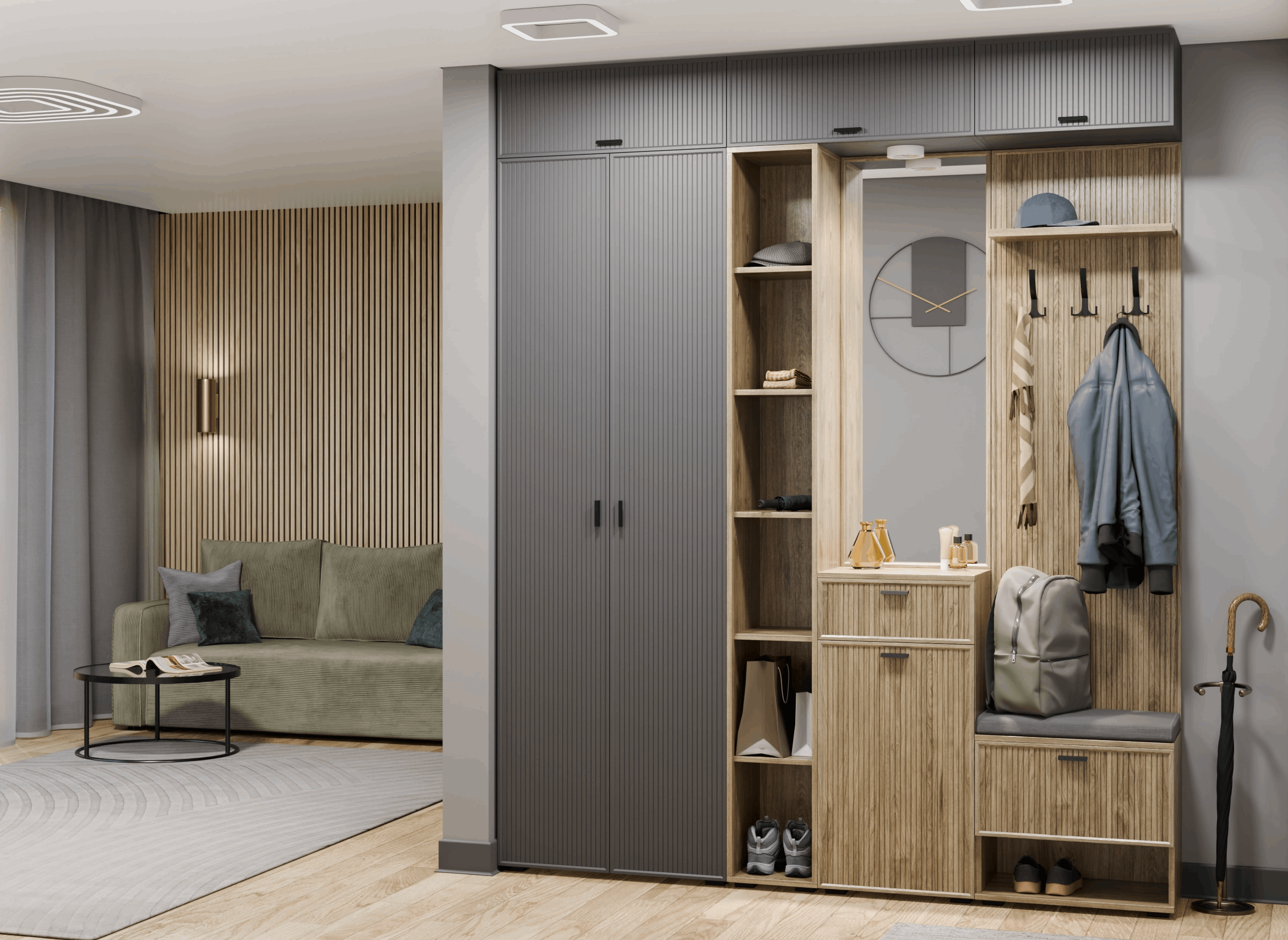 Отзывы о Столплит Модульная прихожая Стелла композиция 3 Серый Оникс Ребристый/Гикори Светлый Ребристый