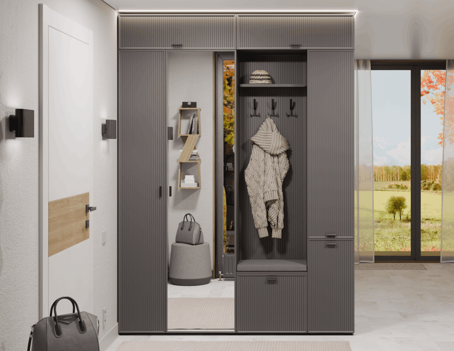 Модульная прихожая Стелла композиция 7 (Серый Оникс Ребристый) Код I0000455877