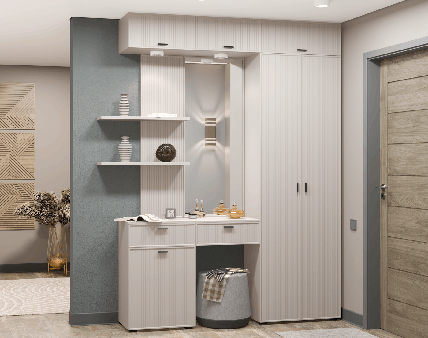 Модульная прихожая Стелла композиция 8 (Серый Кашемир ребристый) Код I0000455882