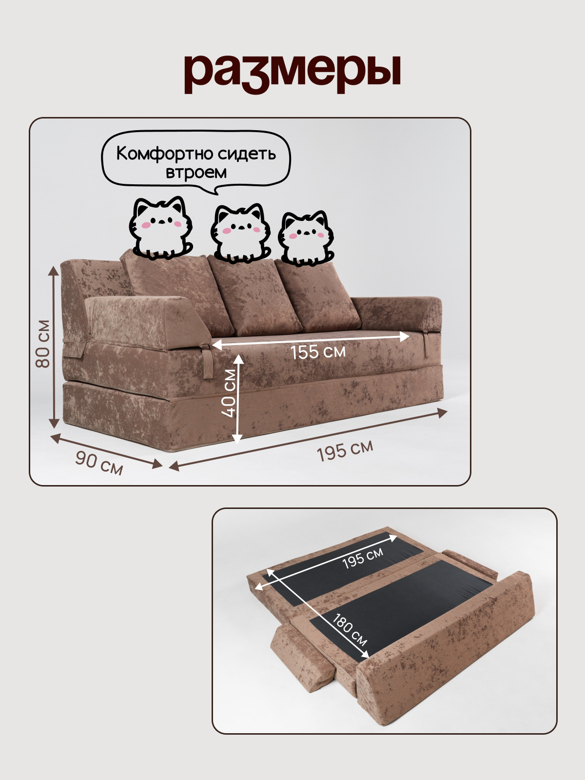 Экологически чистые материалы и продуманный дизайн позволят создать уютную атмосферу в комнате. Удобные съемные подушки обеспечивают дополнительный комфорт во время отдыха, а легкость конструкции позволяет без труда перемещать диван из комнаты в комнату. Книжка подходит не только для квартиры, но и для дачи. Стильный вид впишется в любой интерьер — от лофта до модерна.