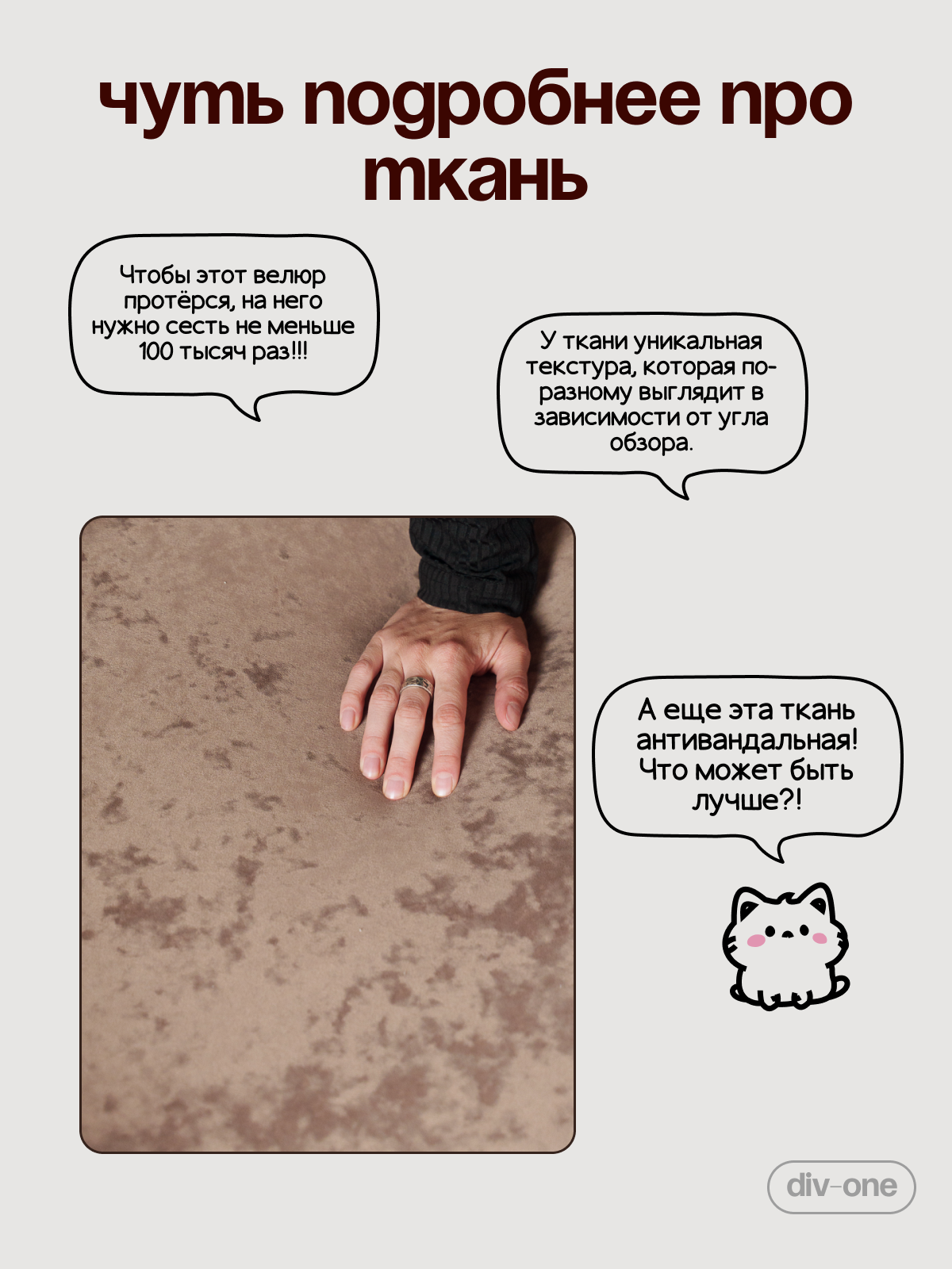 Диапазон возможностей делает его идеальным для малогабаритных квартир, где важна каждая деталь. Использование высококачественного микровелюра в обивке обеспечивает долговечность и легкость в очищении, что особенно важно для семей с детьми, подростками и домашними животными. Антивандальное покрытие защитит диван от повреждений, а его спальное место создано для комфортного отдыха, обеспечивая необходимую поддержку благодаря высокоэластичному пенополиуретану. Наружный чехол легко снимается для чистки благодаря застежкам-молниям.