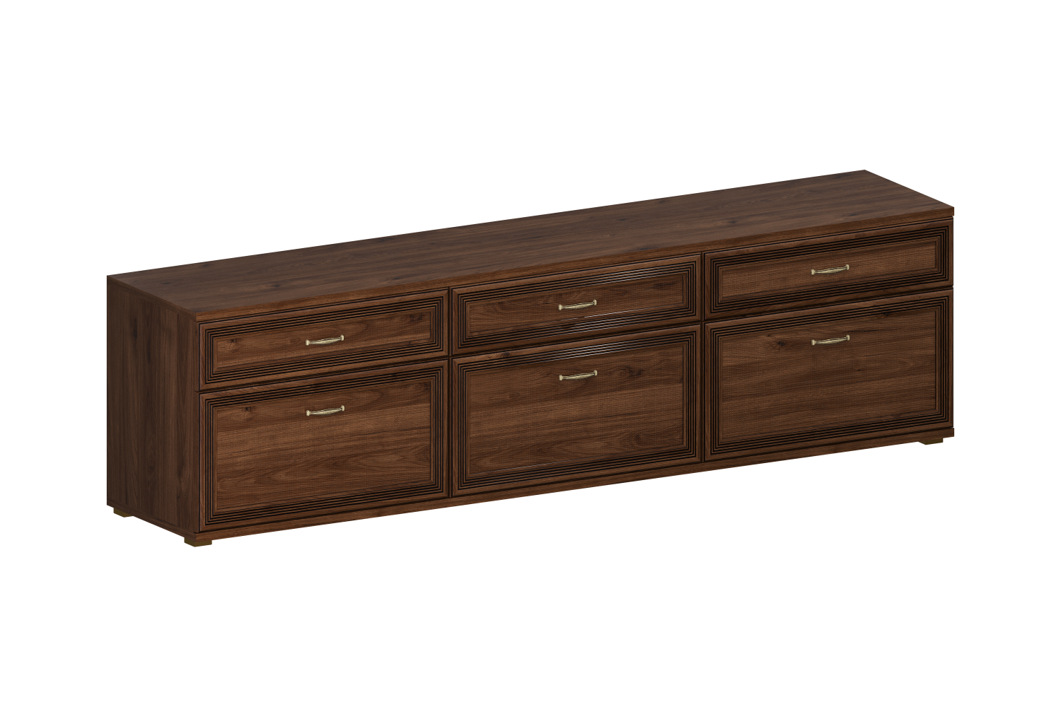 Корпусная мебель для гостиной "Карина" - это модульная мебель. Коллекция включает в себя более 70-ти оригинальных модулей, созданная с их помощью композиция отлично впишется в любое помещение. Программа «Карина» позволит создать уют и гармонию в гостиной. Фасад имеет уникальное сочетание глубокого тиснения и эффекта патины, присущей классическому стилю. Изящество фасада подчеркивает стекло с алмазной гравировкой и фацетом. Мебель изготавливается из высококачественных материалов: ЛДСП, МДФ (фасад) компании Egger имеют класс эмиссии Е1. Коллекция мебели комплектуется высококачественной европейской фурнитурой. Во всех выдвижных ящиках используются направляющие Quadro фирмы Hettich, которые обеспечат долгую превосходную функциональность. Встроенный демпфер Silent System позволяет закрывать ящик плавно и бесшумно. Скрытый монтаж делает механизм в нижней части ящика невидимым глазу, что позволяет не нарушать элегантный дизайн. Петли с доводчиками фирмы Titus обеспечивают бесшумное закрытие створки.