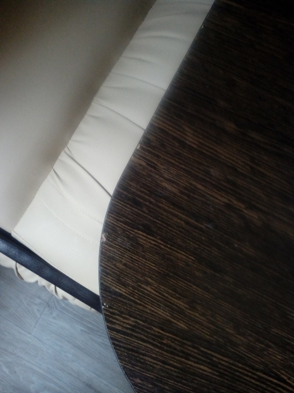 Кромка на столешнице вся в буграх и клею, на одном из табуреток кромка на половину отклеена, мягкий угол спинка скрепляется с трудом. На спинке маленькой и большой в место ткани пристрелили оргалит когда как на угловой спинке ткань, с чем это связанно не понятно наверное ткань закончилась:). В целом после сборки смотрится очень красиво перекрывая все его недостатки. А вам я советую на производство отправить замечание что так по недобросовестно относятся к своей работе.