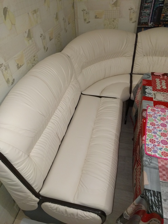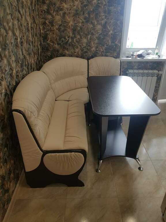 Стол отправила на дачу, табуретки пошли в зал под ноги. А вот угловой диван, чудесный, оставила на кухне. Он правда очень удобный и мягкий. Ну а внешне выглядит просто убийственно дорого. Чистить легко. Спасибо за качественную мебель.