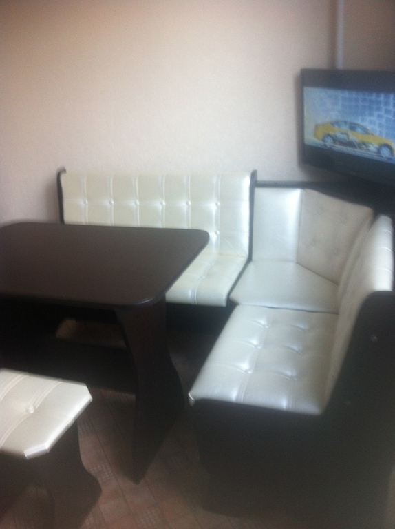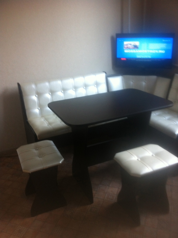 В стоимость входят удобный угловой диван, стол, два табурета.