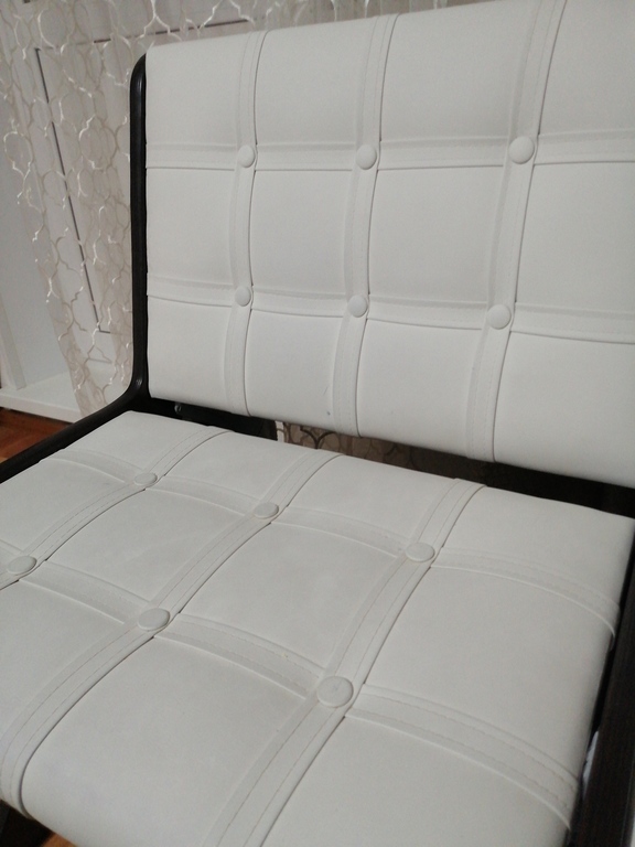 Красивый и недорогой. Сделан качественно. Сиденья мягкие, удобные. Смотрится на кухне очень нарядно.