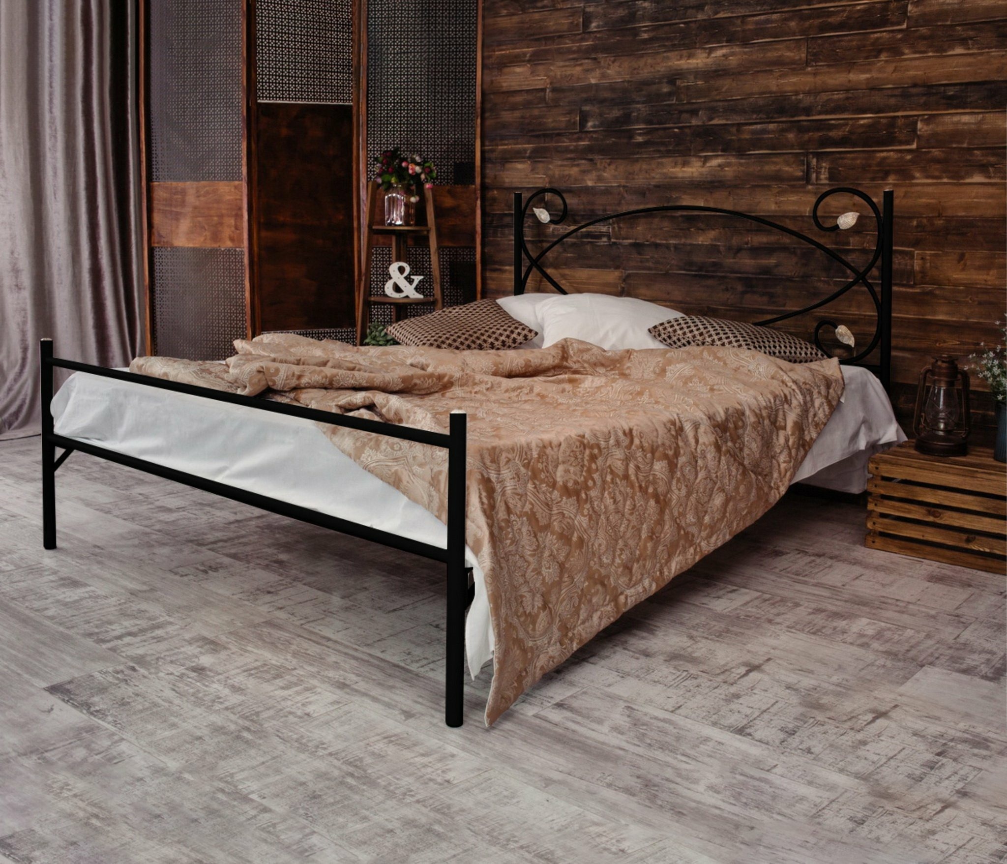 Кованая кровать Виктория 1.4 с одной спинкой (Черный)