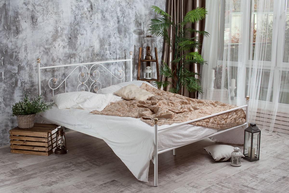 Кованая кровать Камелия выполнена из надежных, прочных материалов, благодаря чему прослужит вам долгие годы.