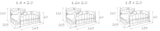 Размеры спального места (ДхШ) 2000х1800. Высота изножья 600 мм.