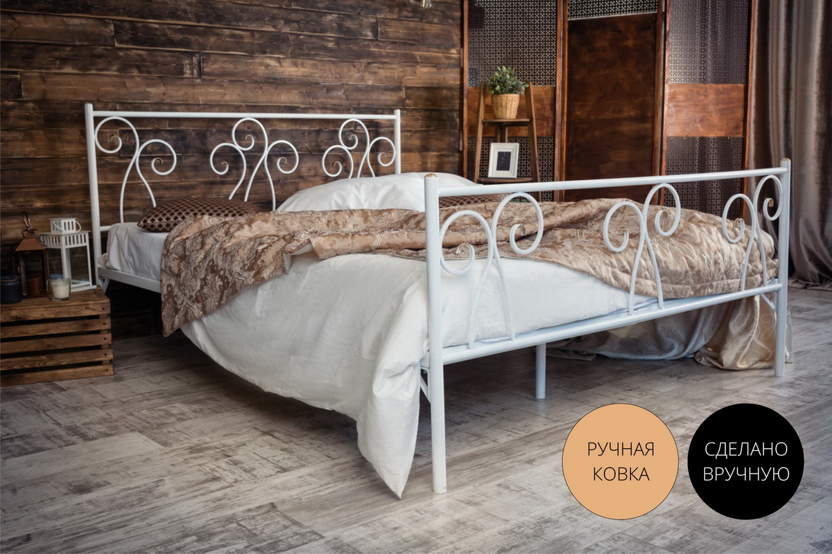 Кованая кровать Лацио 1.6 с двумя спинками (Белый)