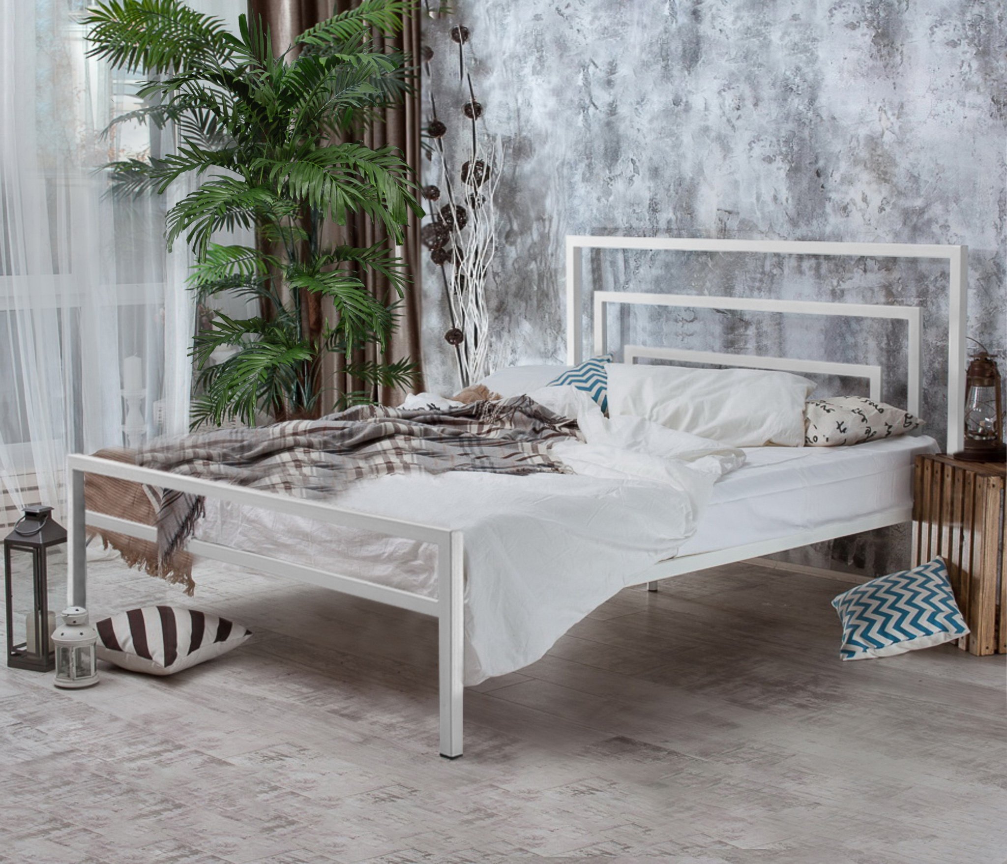 Металлическая кровать Атланта - изысканная, эффектная кровать в стиле лофт ручного исполнения, которая будет уместна как в интерьерах соответствующей стилистики, так и в комнатах, оформленных в любом современном направлении дизайна.
