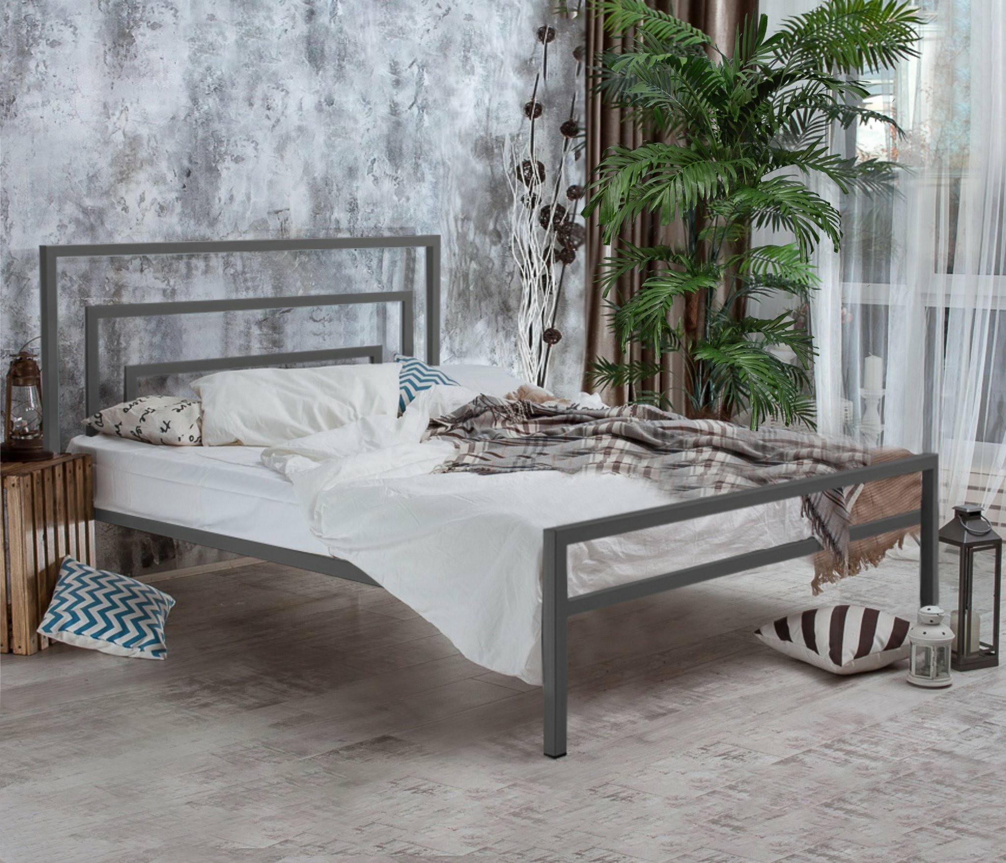 Металлическая кровать Атланта - изысканная, эффектная кровать в стиле лофт ручного исполнения, которая будет уместна как в интерьерах соответствующей стилистики, так и в комнатах, оформленных в любом современном направлении дизайна.