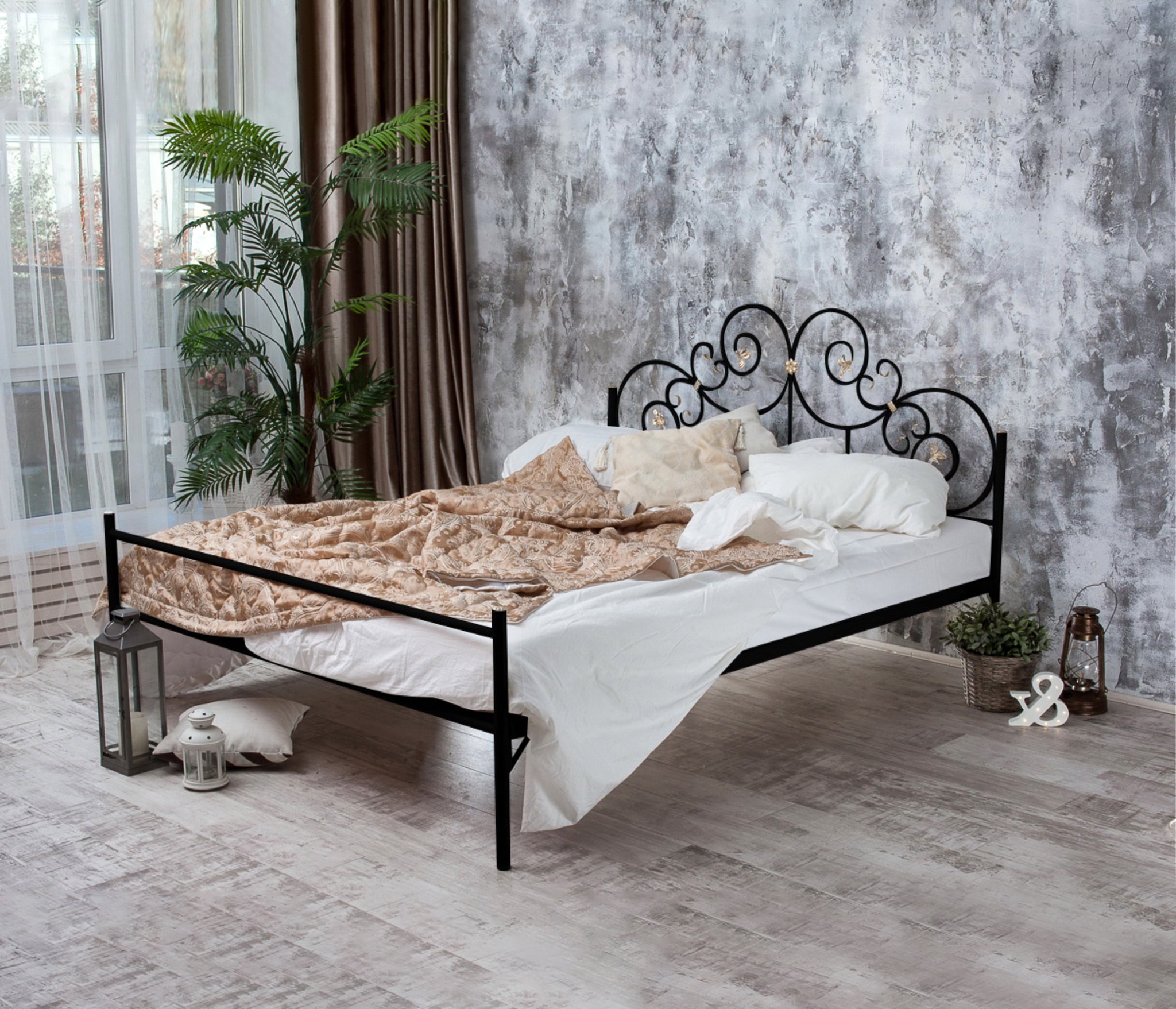 Кованая кровать Афина 1.6 с одной спинкой (Черный)