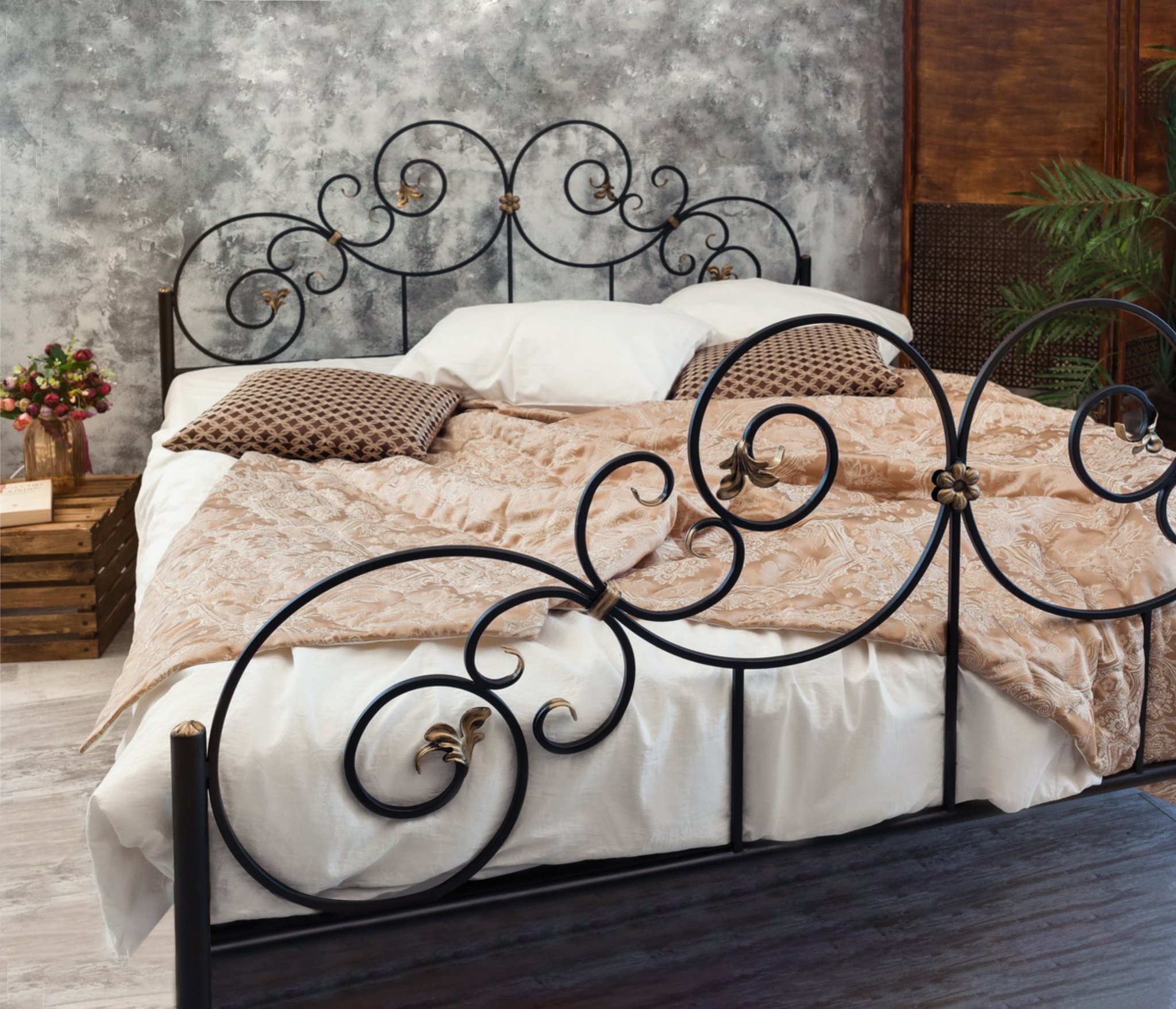 Роскошное оформление изголовья и изножья, кристально чистый белый или благородно черный цвет и легкость и воздушность конструкции сделают ее настоящим украшением спальной комнаты как в современной, так и в классической стилистике.