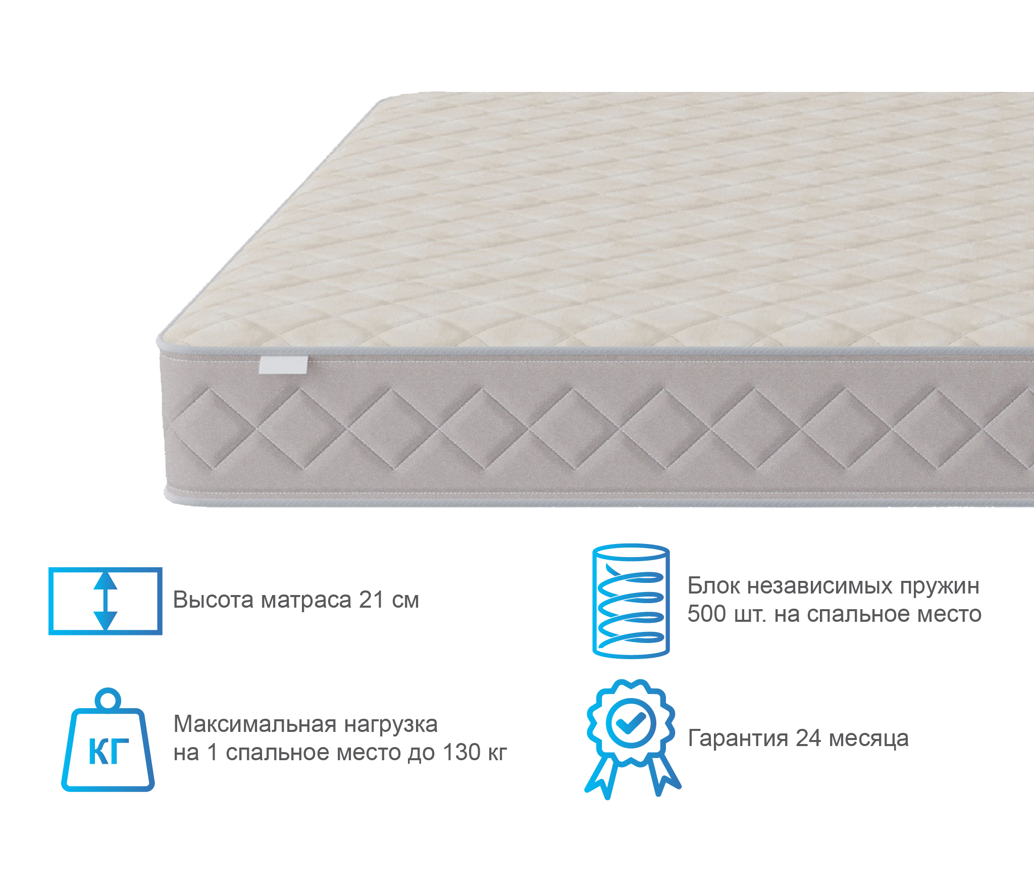 Это классическая конструкция матраса, универсальный блок пружин с точечной поддержкой, термоволокно, которое защитит комфортные слои от соприкосновения с пружинами и соответственно истерания. Слои кокоса добавят необходимой жесткости и прочности.