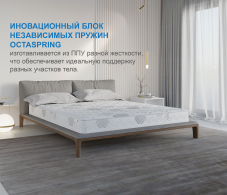 Пена Sky Cell дарит упругую поддержку и комфортную высокую жесткость. Она прекрасно распределяет нагрузку и обеспечивает качественную опору каждой части тела человека. Ребра жесткости из высокоплотной пены по всей площади матраса обеспечивают уникальную упругость, дарящую здоровый сон и заряд бодрости на весь день. Повышенная воздухопроницаемость пружин Octaspring обеспечивает комфортную свежесть спального места на протяжении всей ночи.