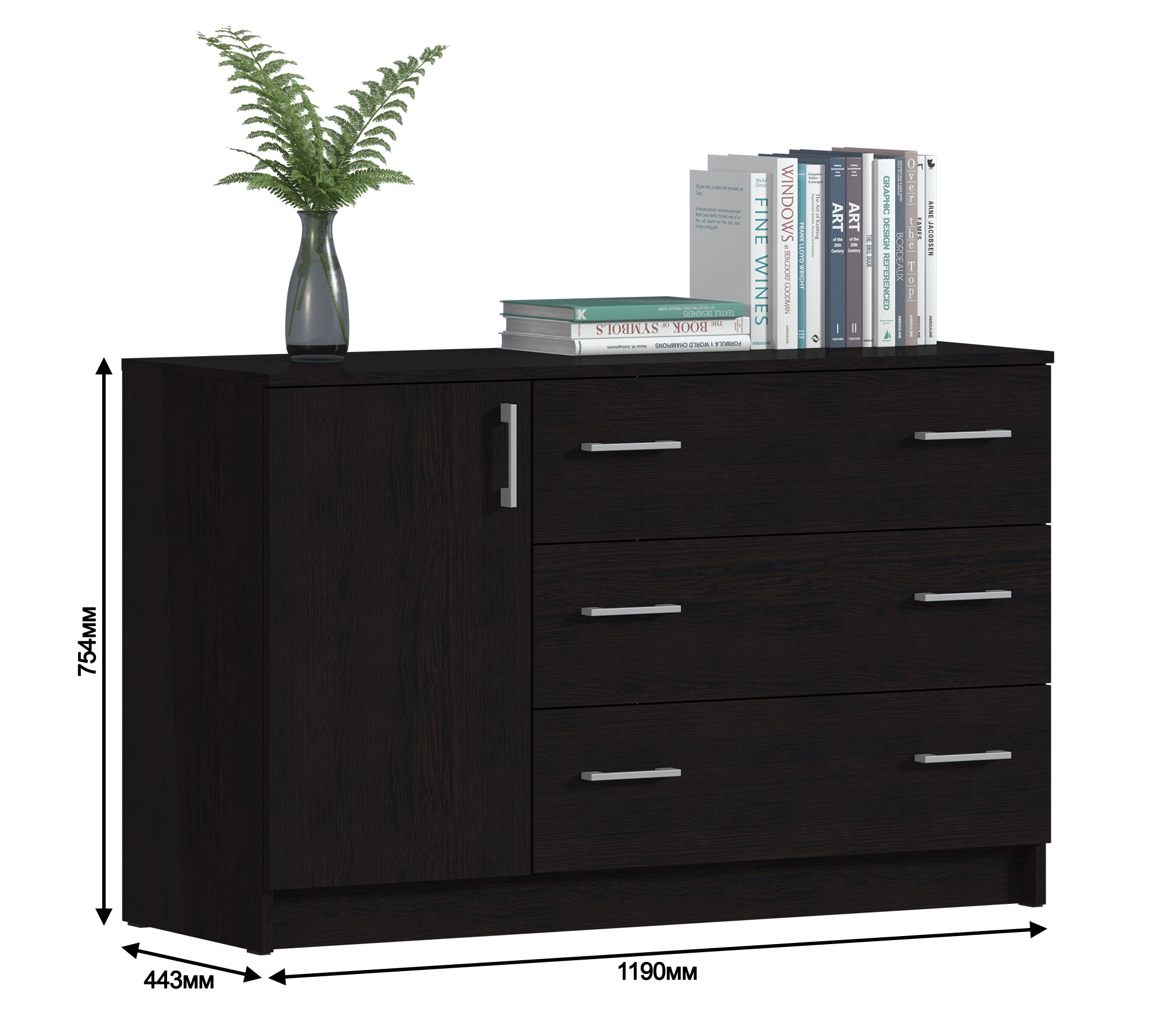 Вместительный и практичный комод Терра СБ-2958 – оптимальная система хранения, которую можно разместить в гостиной, спальне, детской или прихожей.