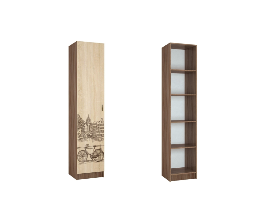 - Классические цвета исполнения Ясень шимо/Дуб Сонома в сочетании с дизайнерскими изображениями городов мира, нанесенными на фасады методом цветной фотопечати.